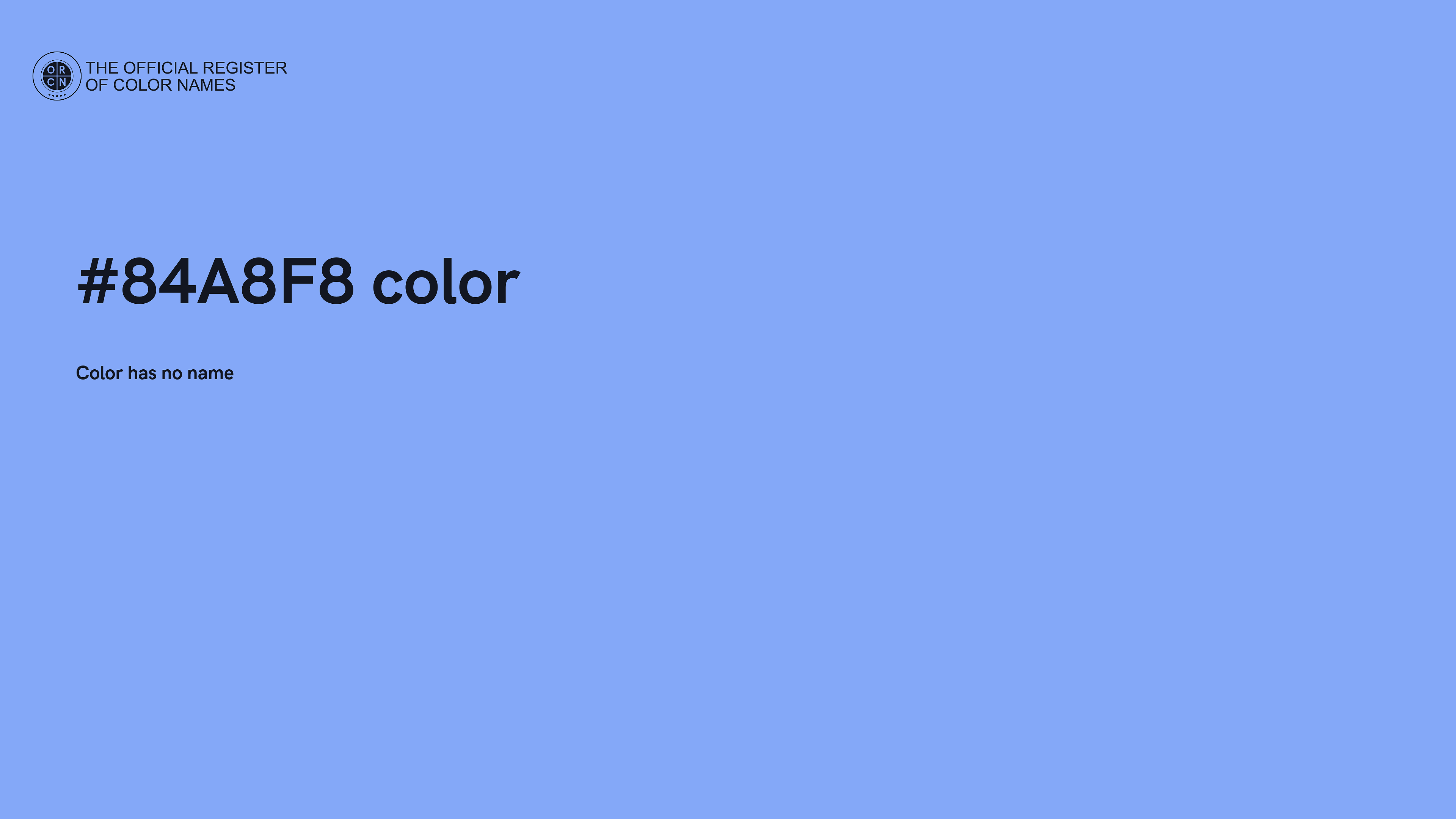 For printing in non digital world, #84A8F8 is represented in CMYK as 45 Cyan, 31 Magenta, 0 Yellow, and 3 Black (Key) (C:45 M:31 Y:0 K:3).