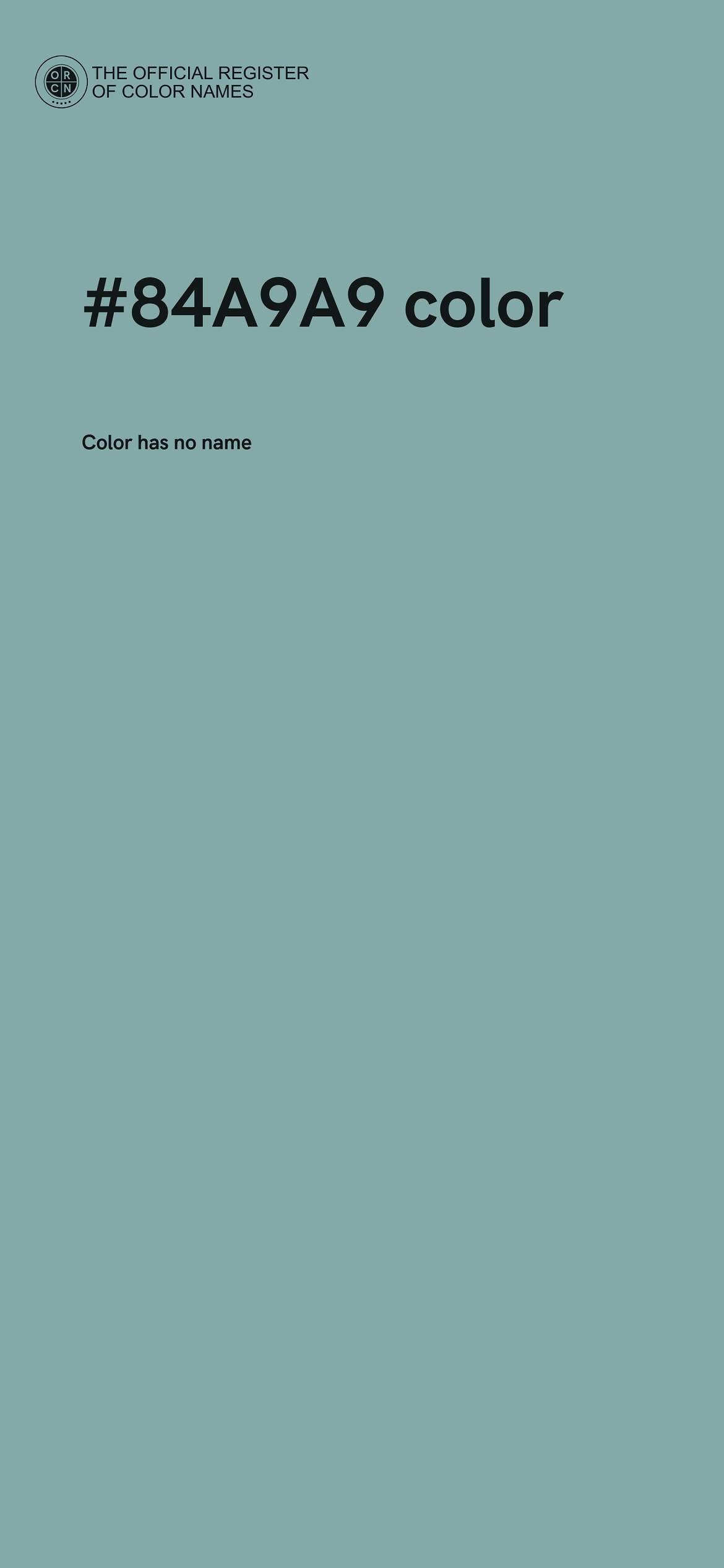 The digital color HEX #84A9A9 belongs to the Cyan Color Family featuring Low Saturation (Saturation Family) and Light (Brightness Family).