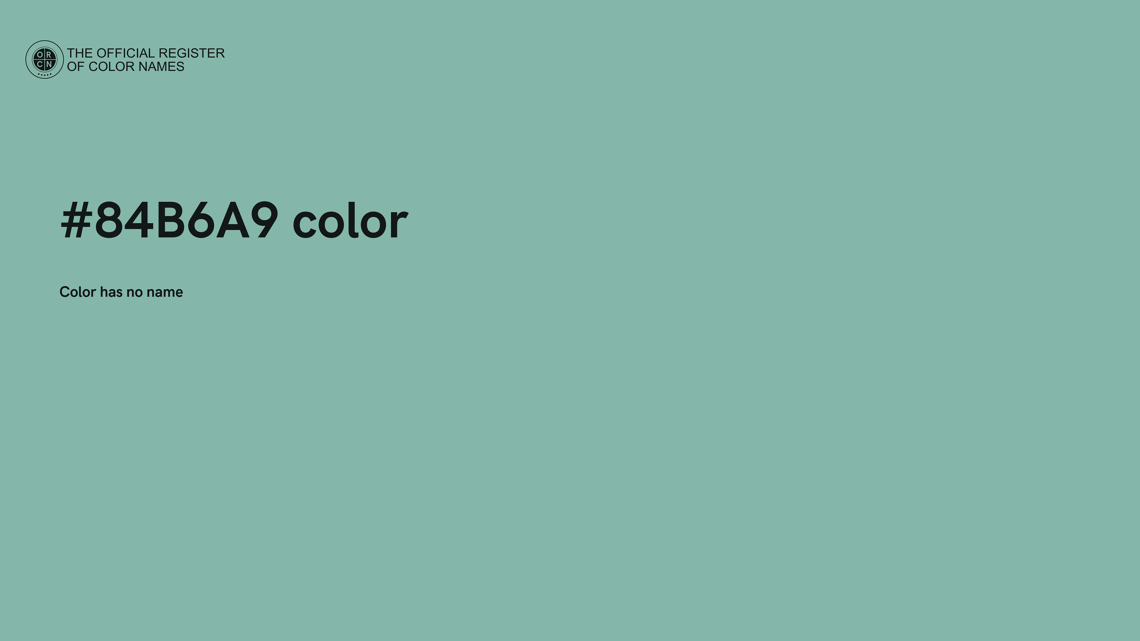 For printing in non digital world, #84B6A9 is represented in CMYK as 20 Cyan, 0 Magenta, 5 Yellow, and 29 Black (Key) (C:20 M:0 Y:5 K:29).