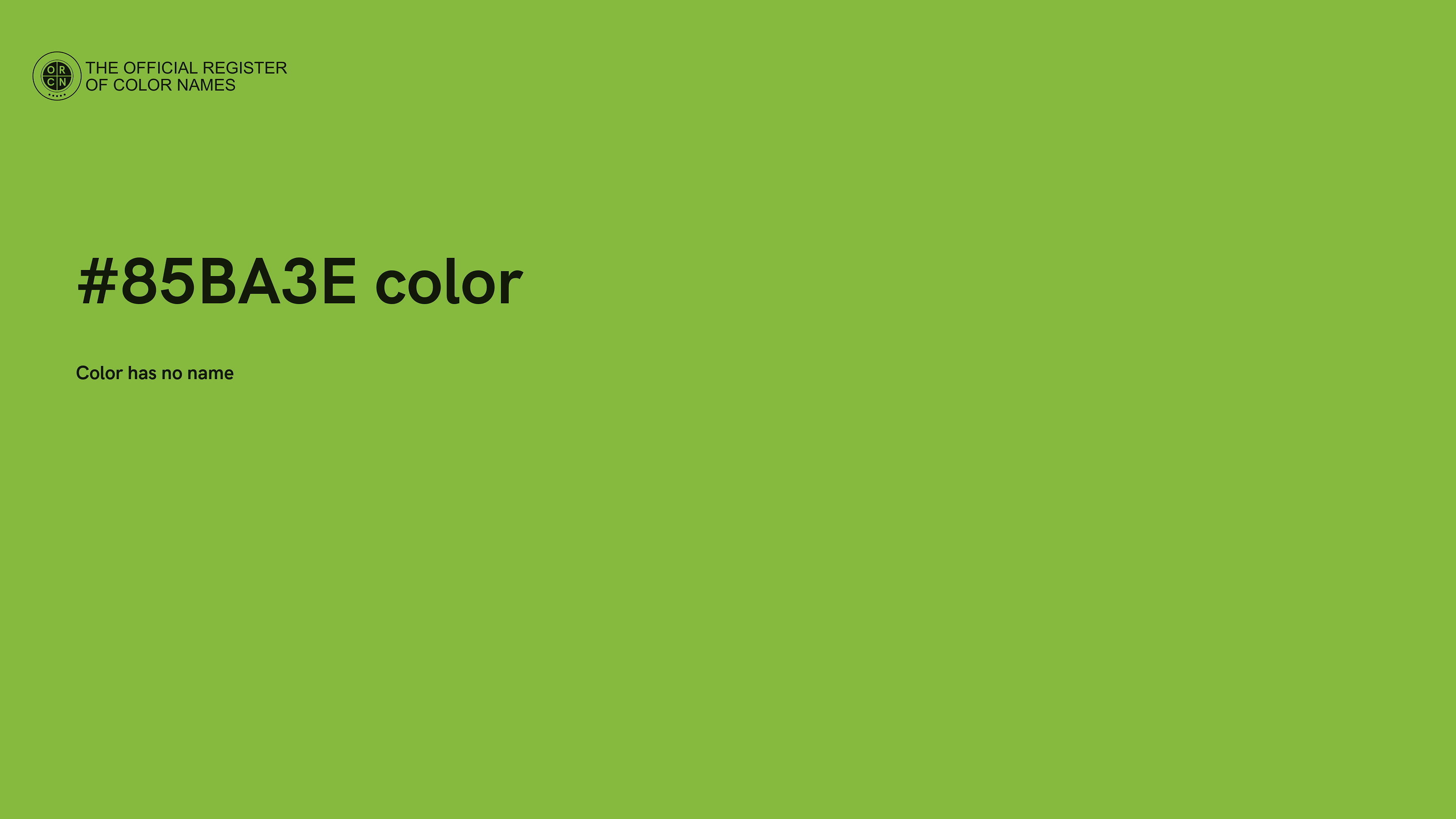 The digital color HEX #85BA3E belongs to the Chartreuse Color Family featuring Moderate Saturation (Saturation Family) and Light (Brightness Family).