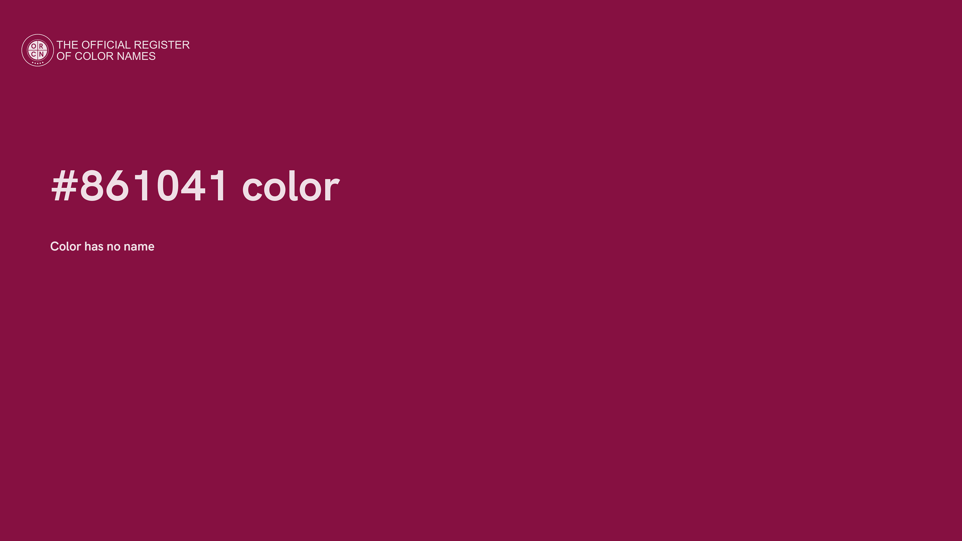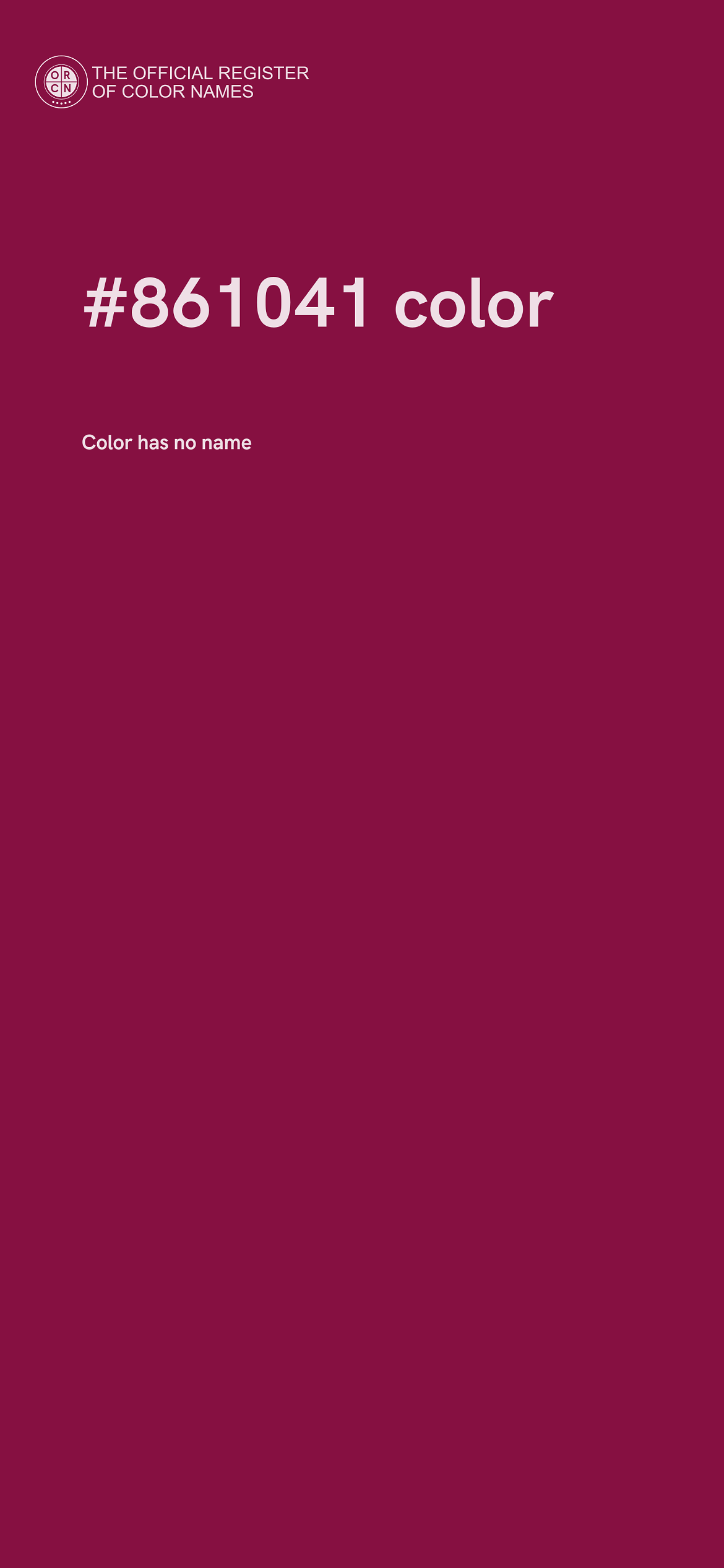 The digital color HEX #861041 belongs to the Rose Color Family featuring High Saturation (Saturation Family) and Neutral (Brightness Family).