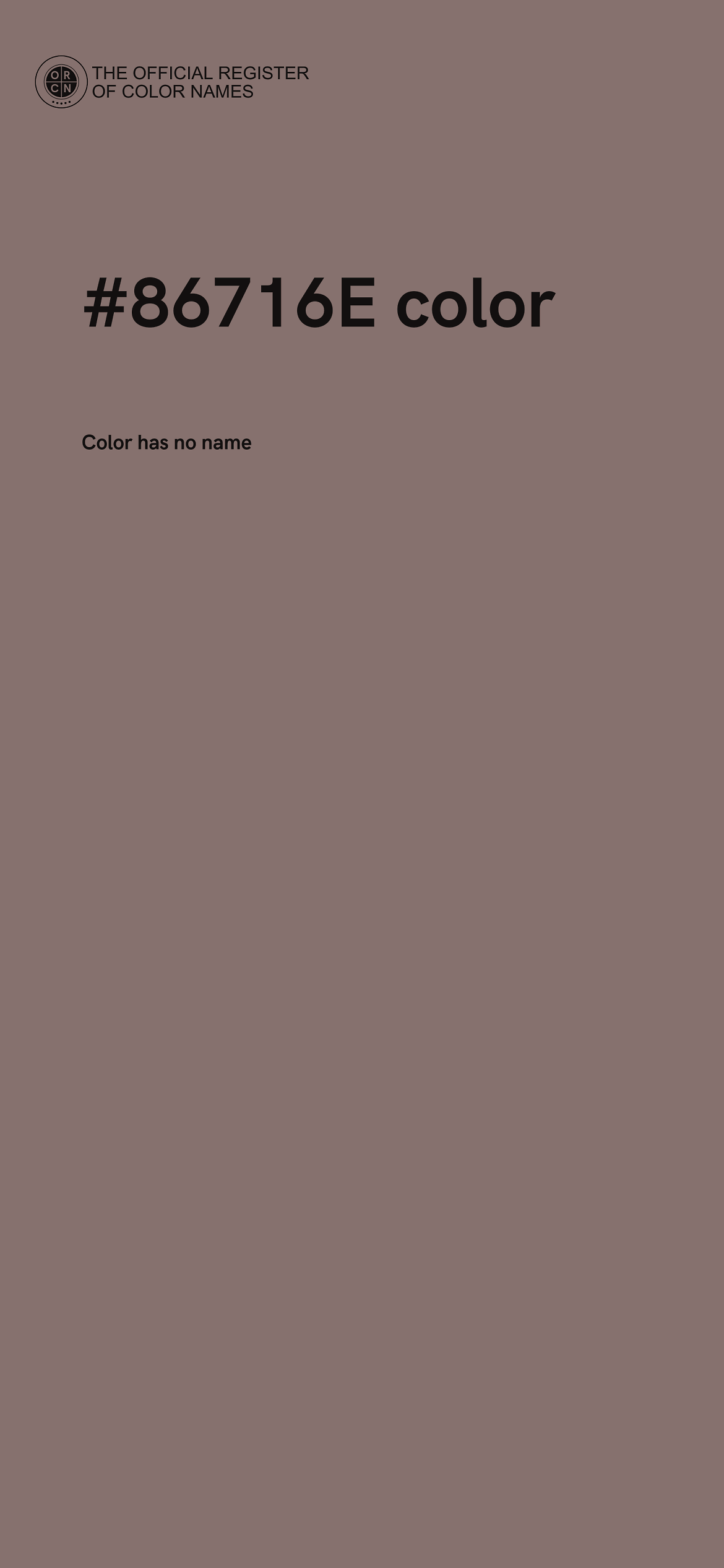 For printing in non digital world, #86716E is represented in CMYK as 0 Cyan, 8 Magenta, 9 Yellow, and 47 Black (Key) (C:0 M:8 Y:9 K:47).