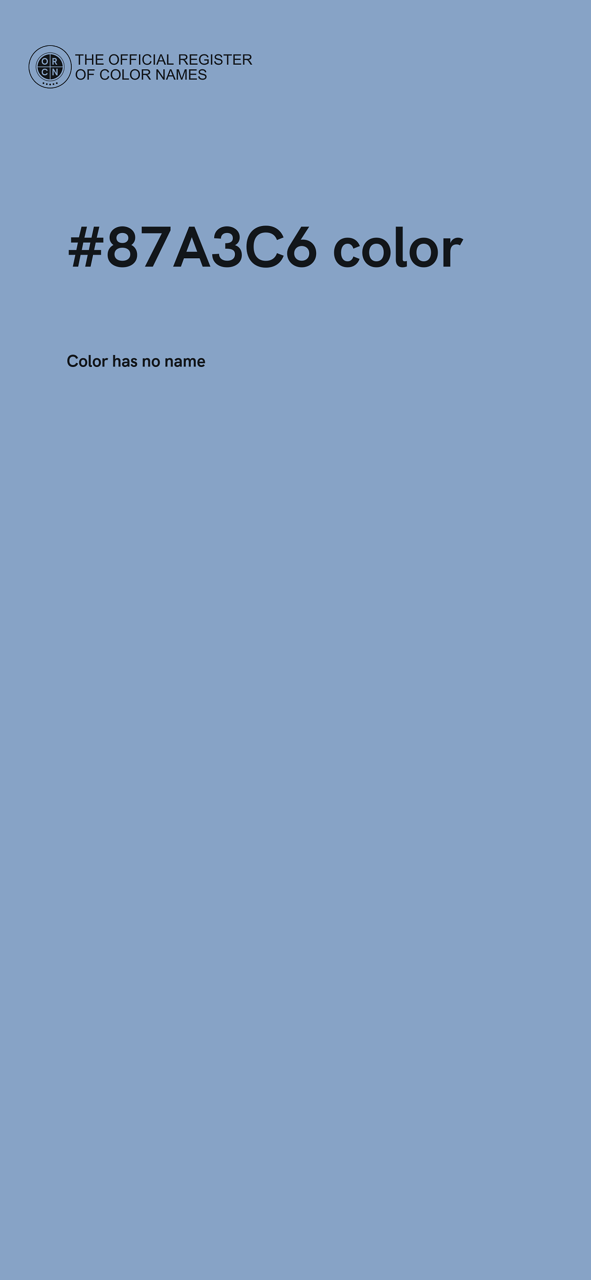 The digital color HEX #87A3C6 belongs to the Azure Color Family featuring Mild Saturation (Saturation Family) and Very Light (Brightness Family).