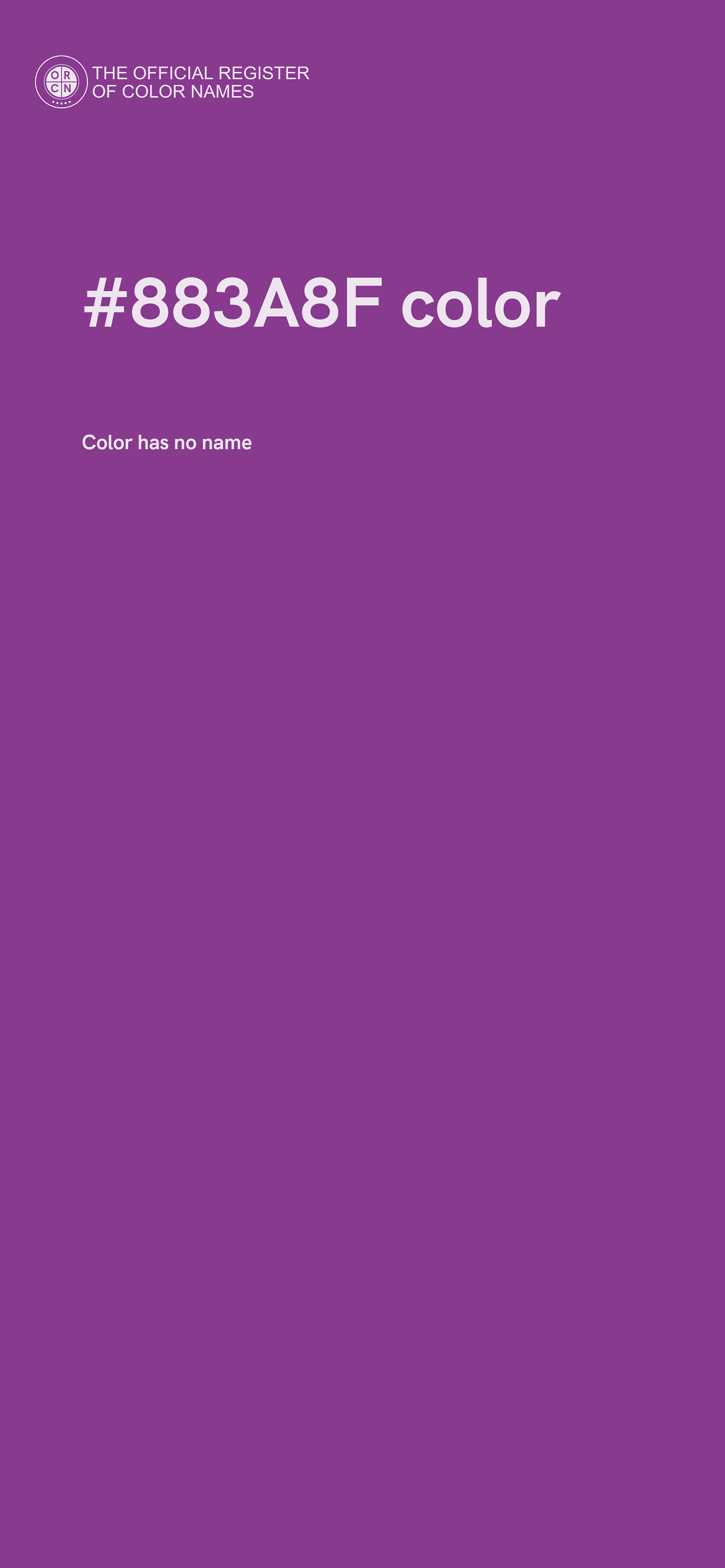 The digital color HEX #883A8F belongs to the Magenta Color Family featuring Moderate Saturation (Saturation Family) and Neutral (Brightness Family).