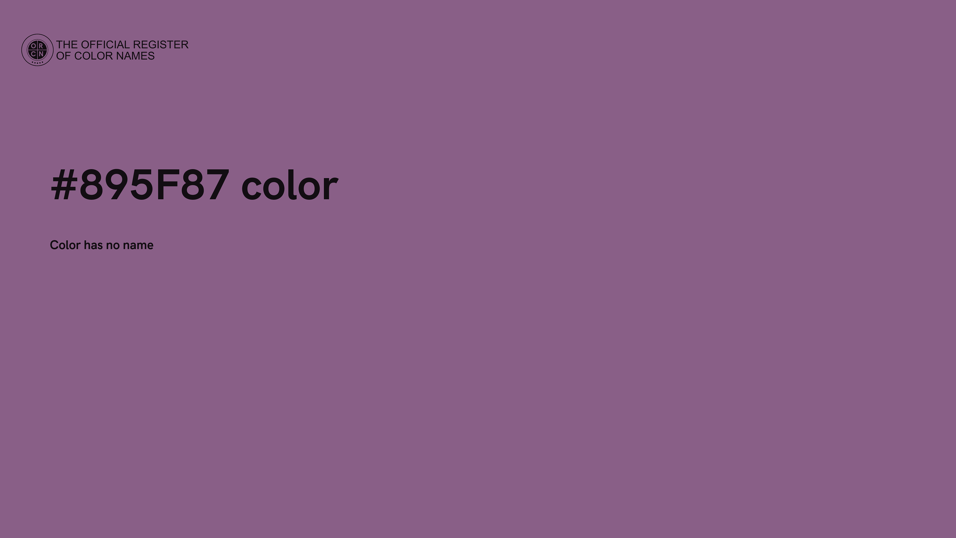 The digital color HEX #895F87 belongs to the Magenta Color Family featuring Low Saturation (Saturation Family) and Light (Brightness Family).