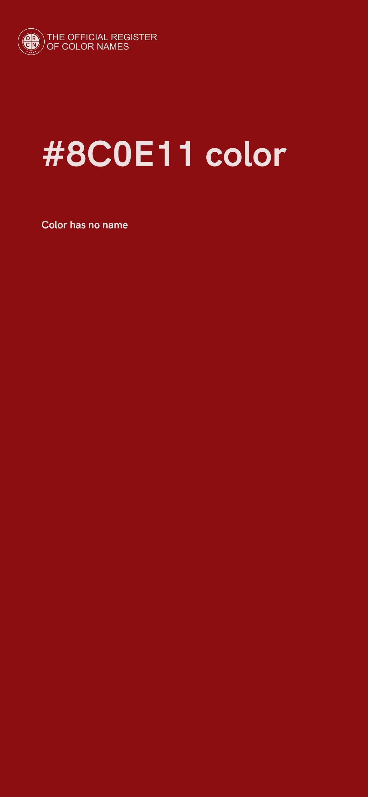 The digital color HEX #8C0E11 belongs to the Red Color Family featuring High Saturation (Saturation Family) and Neutral (Brightness Family).