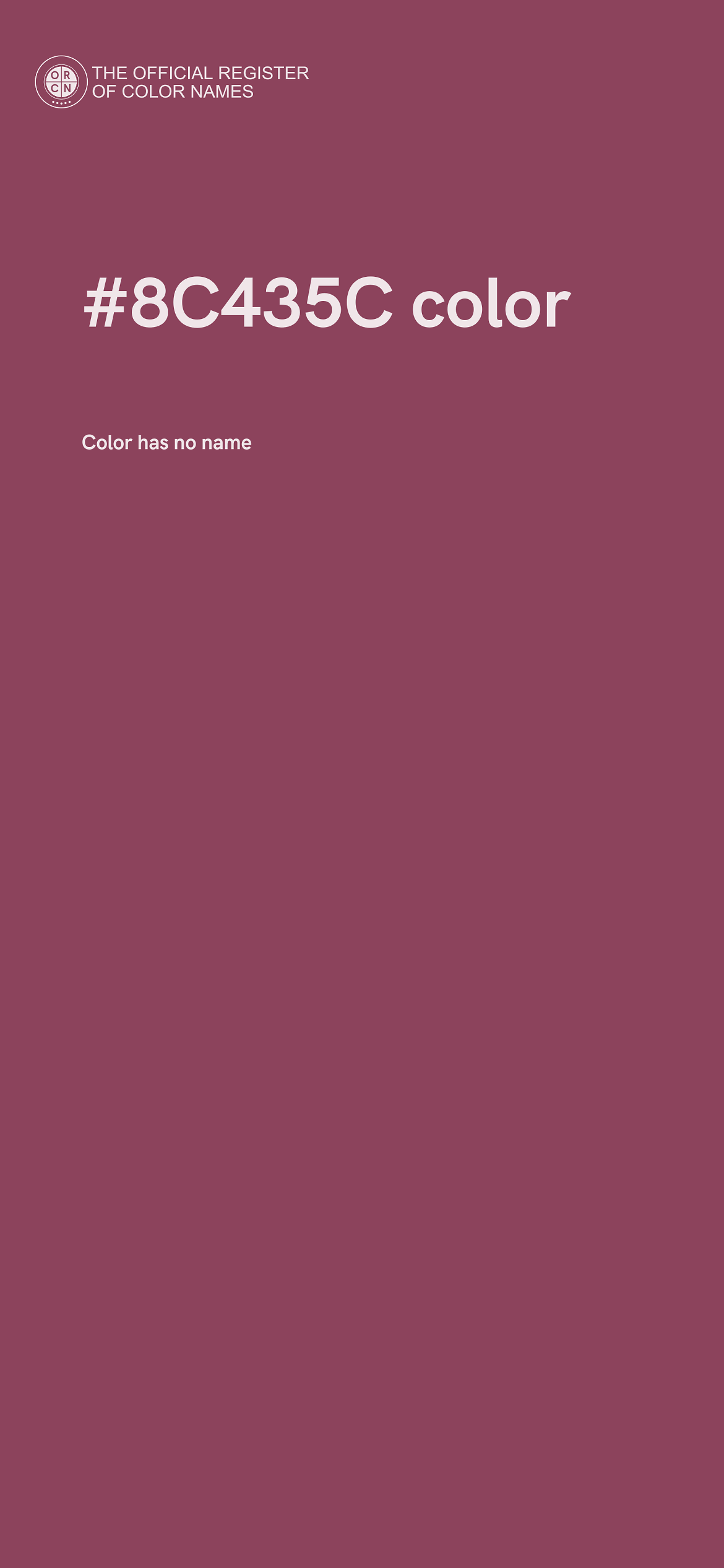 The digital color HEX #8C435C belongs to the Rose Color Family featuring Mild Saturation (Saturation Family) and Light (Brightness Family).