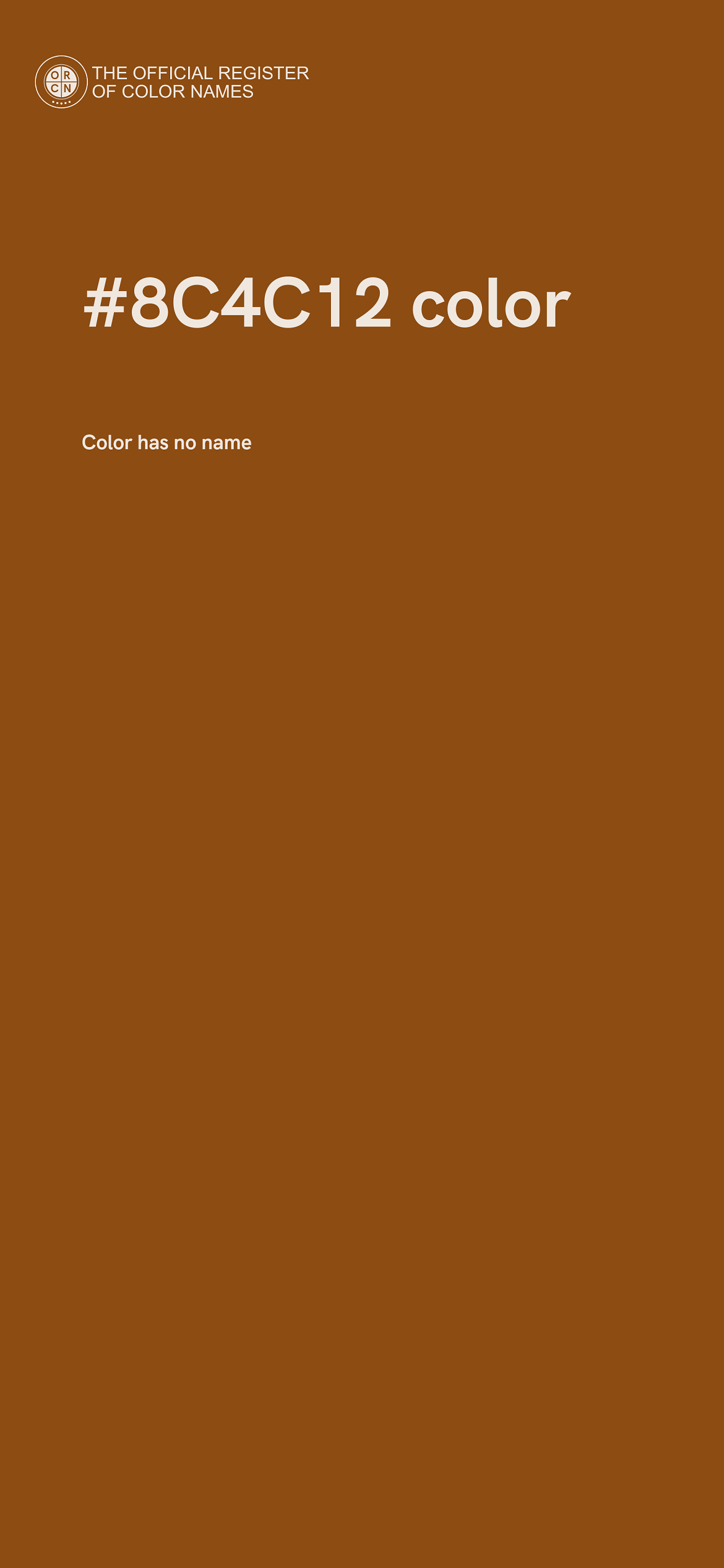 The digital color HEX #8C4C12 belongs to the Orange Color Family featuring High Saturation (Saturation Family) and Neutral (Brightness Family).