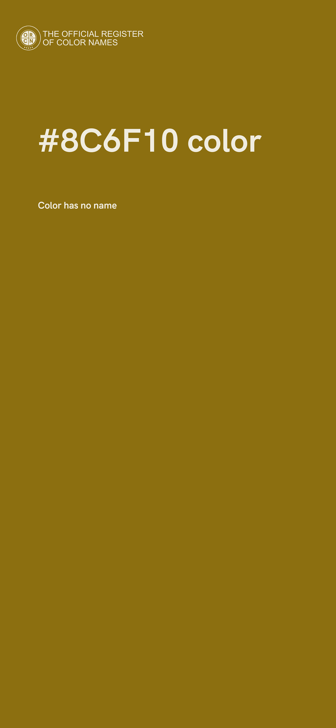 The digital color HEX #8C6F10 belongs to the Yellow Color Family featuring High Saturation (Saturation Family) and Neutral (Brightness Family).