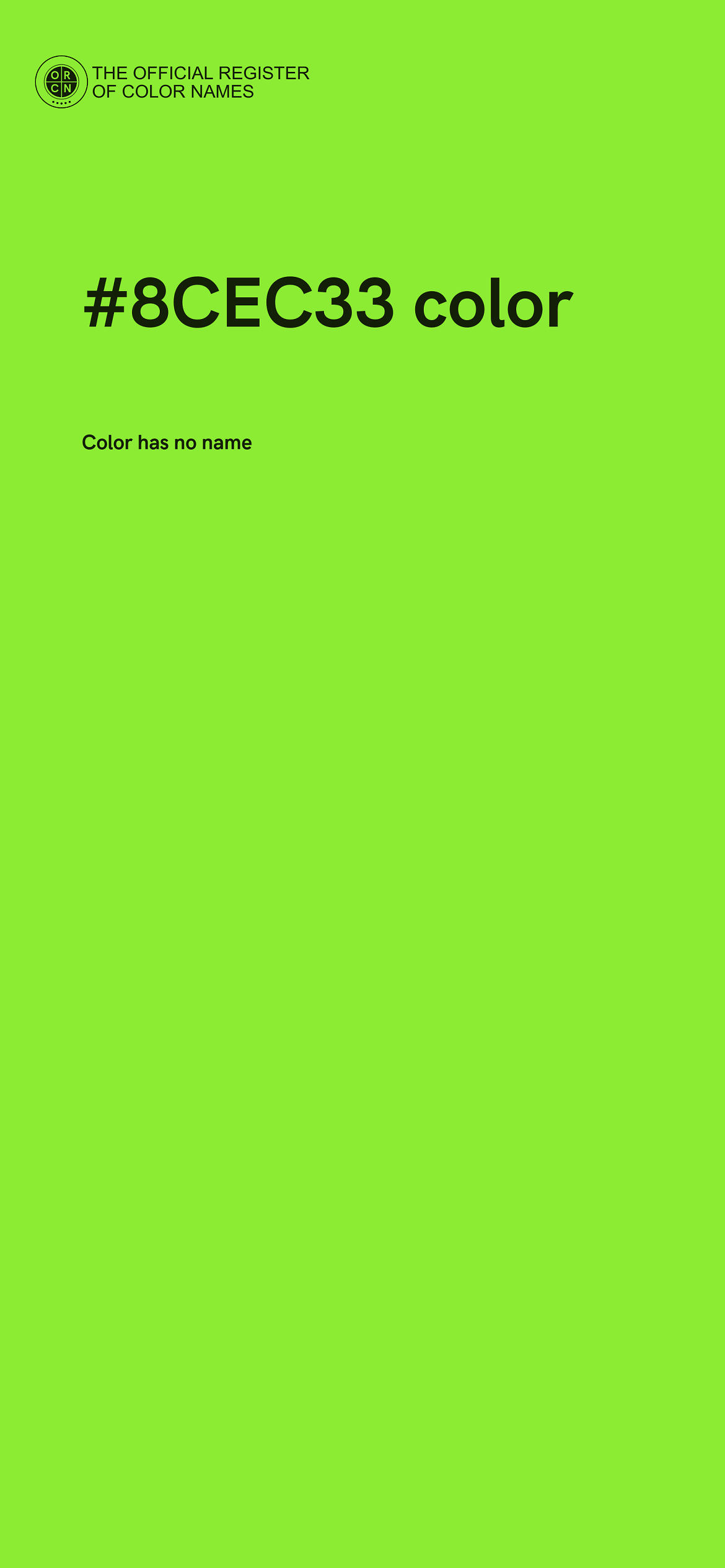 The digital color HEX #8CEC33 belongs to the Chartreuse Color Family featuring High Saturation (Saturation Family) and Light (Brightness Family).