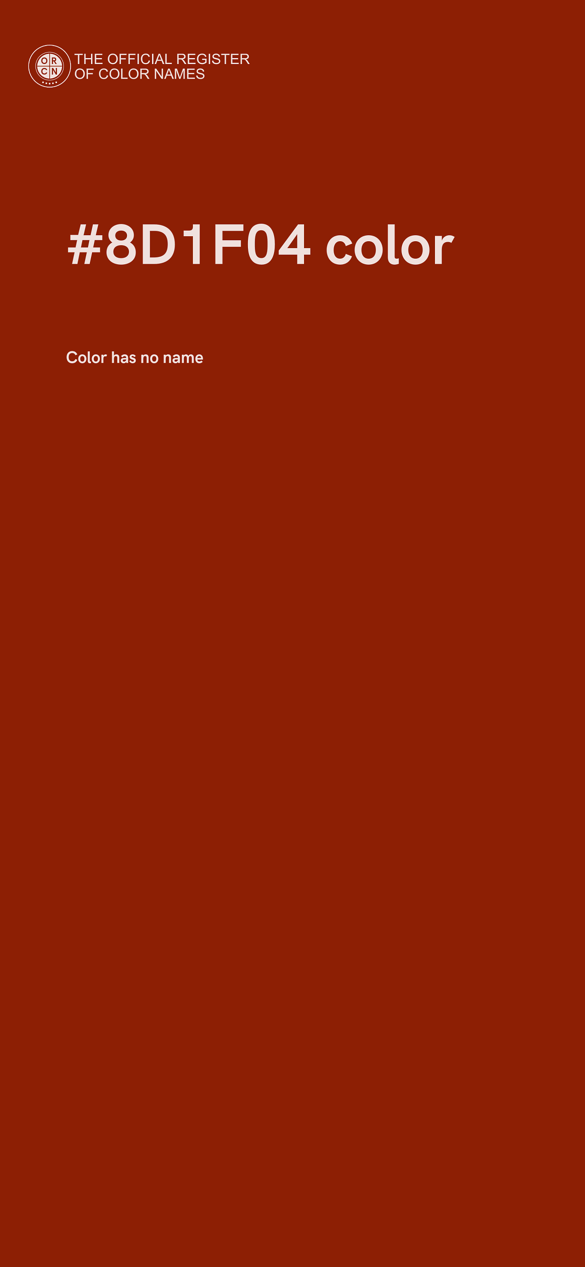 The digital color HEX #8D1F04 belongs to the Red Color Family featuring Full Saturation (Saturation Family) and Neutral (Brightness Family).
