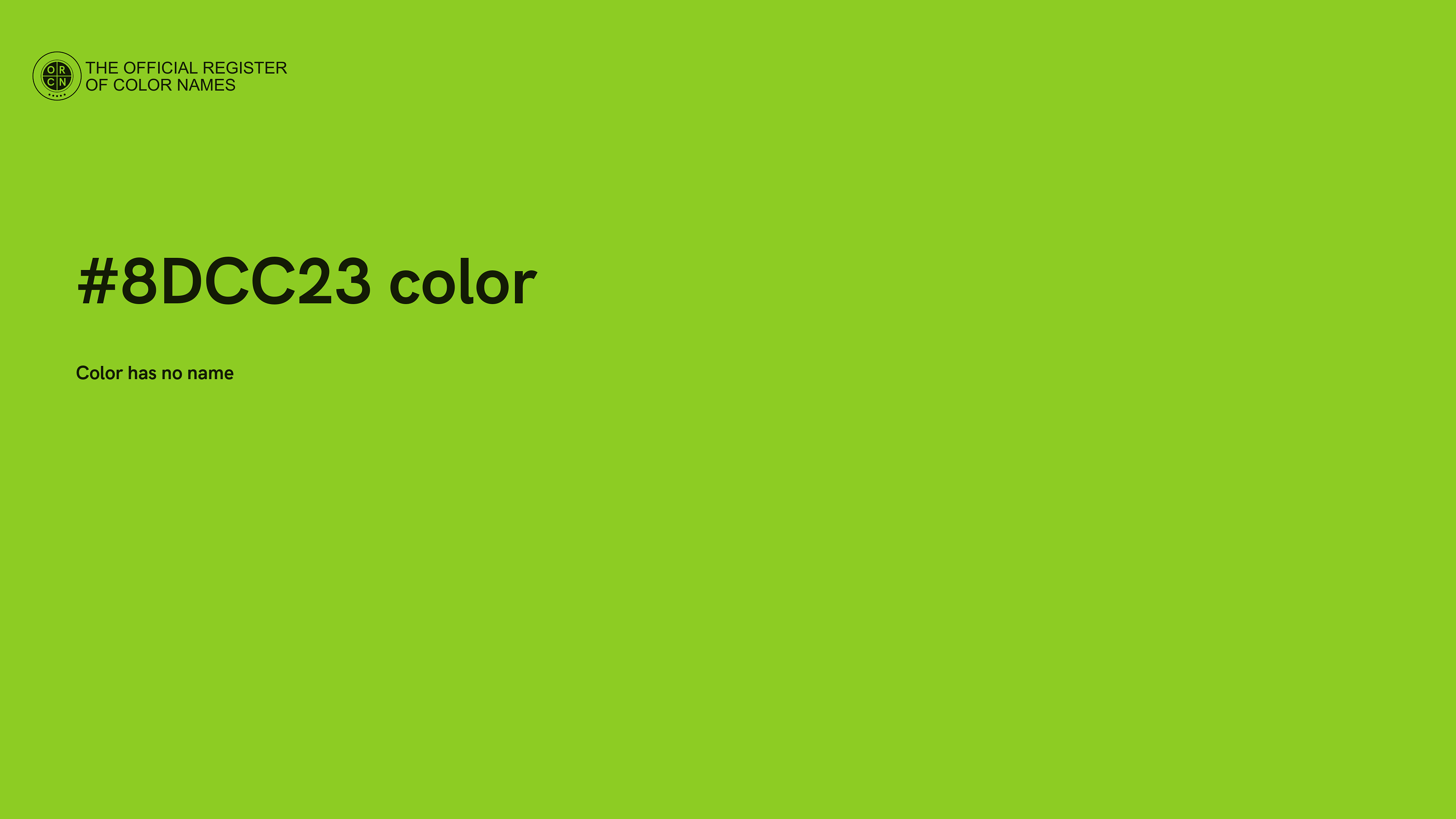 The digital color HEX #8DCC23 belongs to the Chartreuse Color Family featuring High Saturation (Saturation Family) and Light (Brightness Family).