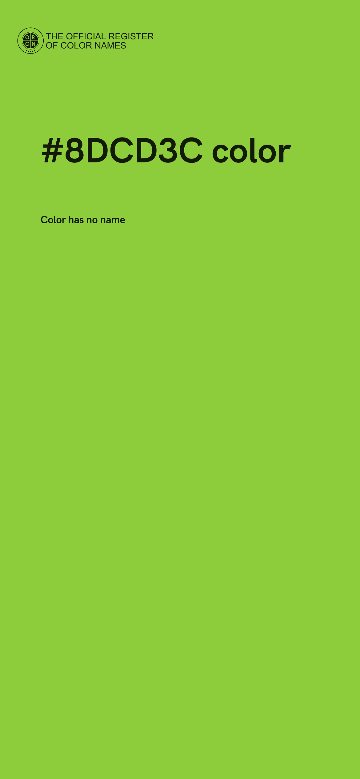 The digital color HEX #8DCD3C belongs to the Chartreuse Color Family featuring Moderate Saturation (Saturation Family) and Light (Brightness Family).