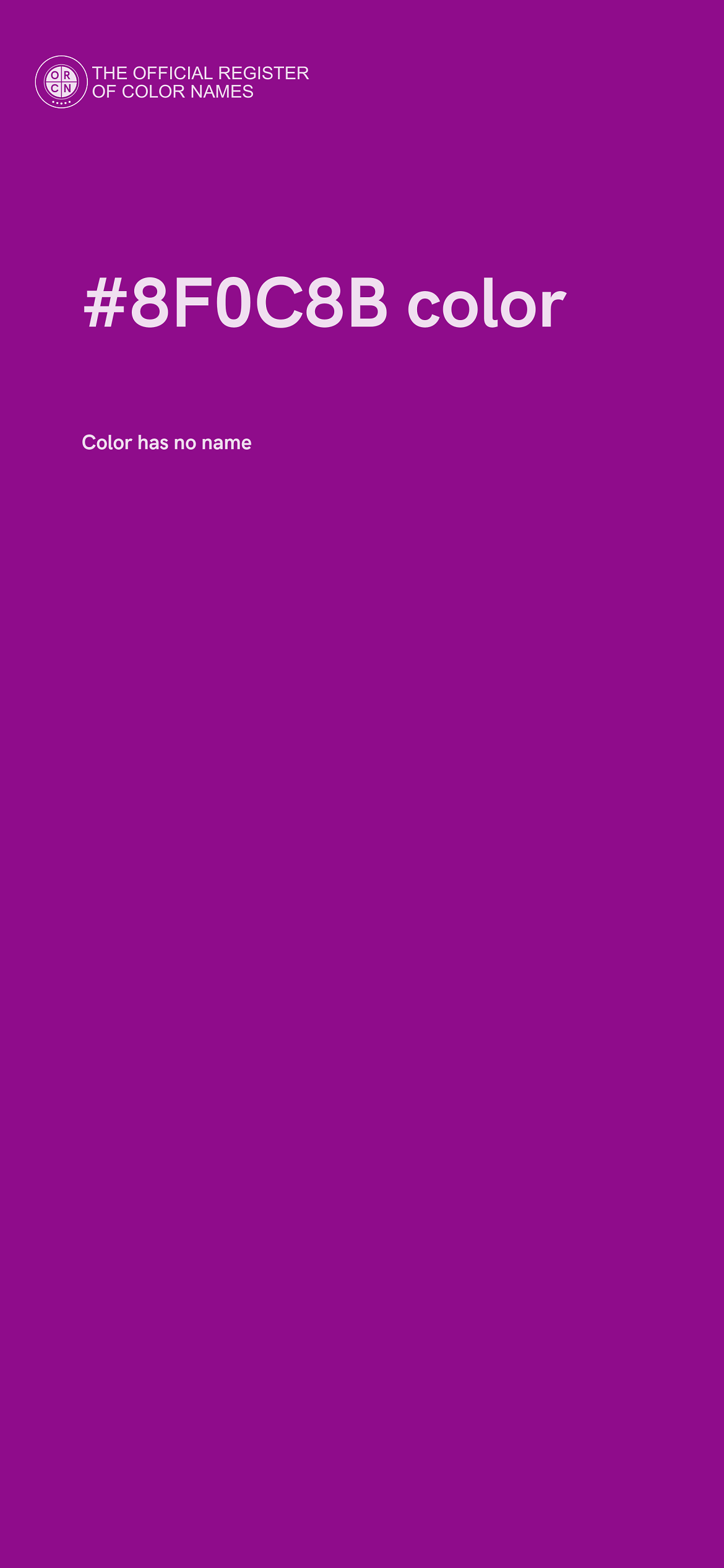 The digital color HEX #8F0C8B belongs to the Magenta Color Family featuring Full Saturation (Saturation Family) and Neutral (Brightness Family).