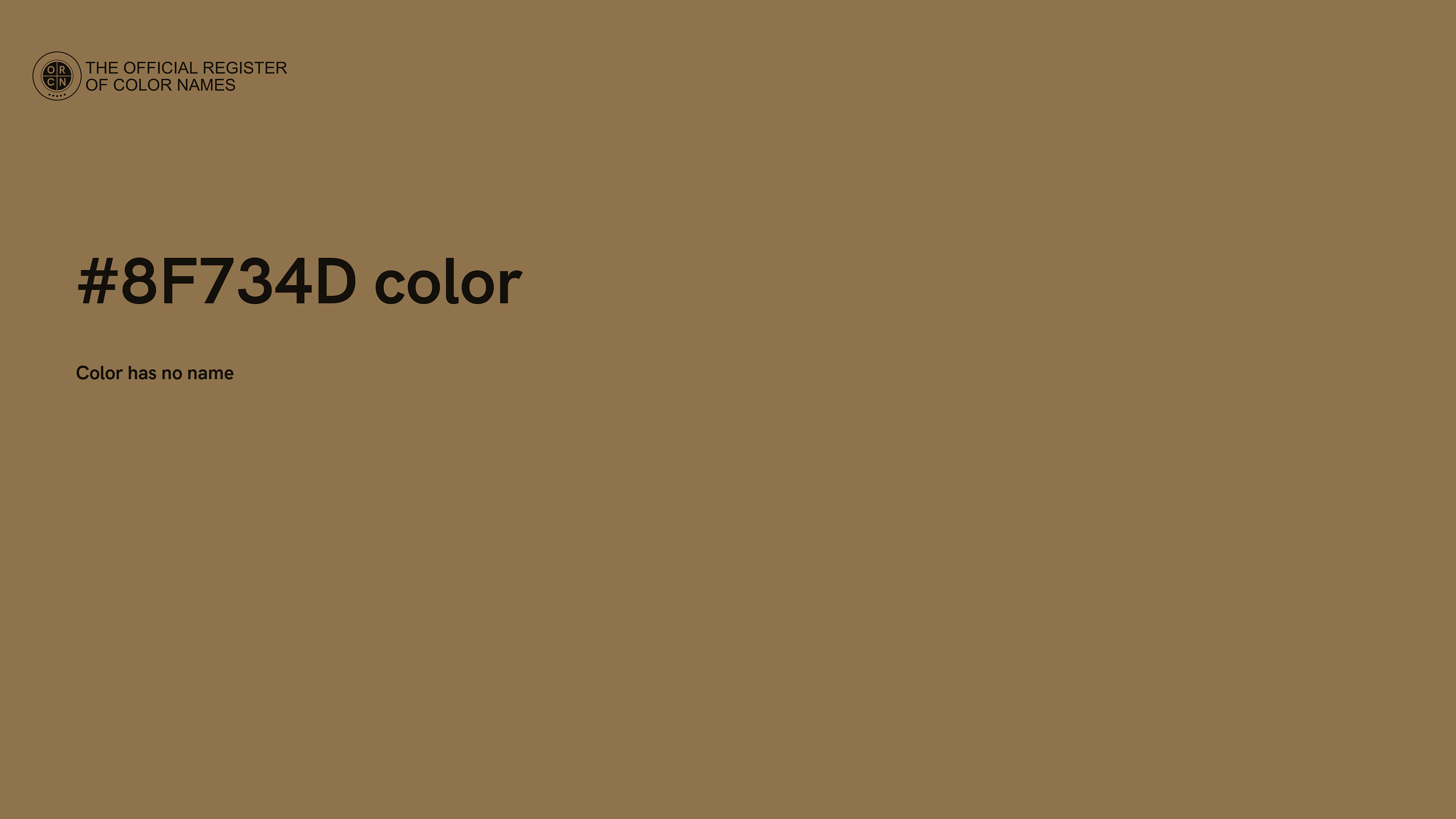 The digital color HEX #8F734D belongs to the Orange Color Family featuring Mild Saturation (Saturation Family) and Light (Brightness Family).