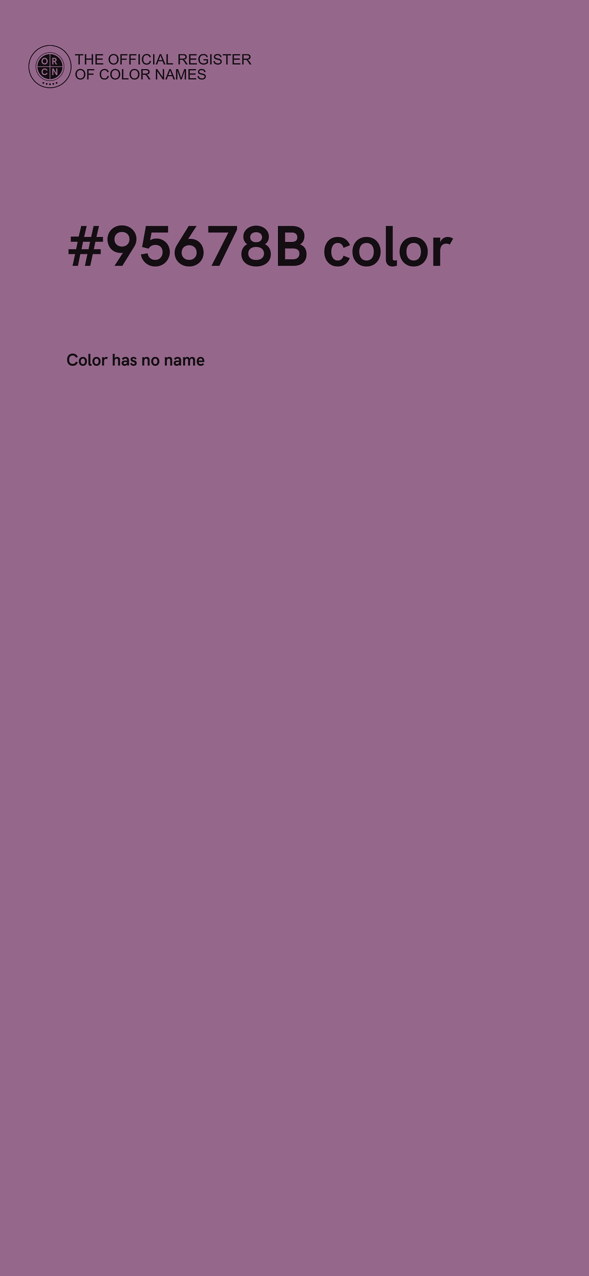 For printing in non digital world, #95678B is represented in CMYK as 0 Cyan, 18 Magenta, 4 Yellow, and 42 Black (Key) (C:0 M:18 Y:4 K:42).
