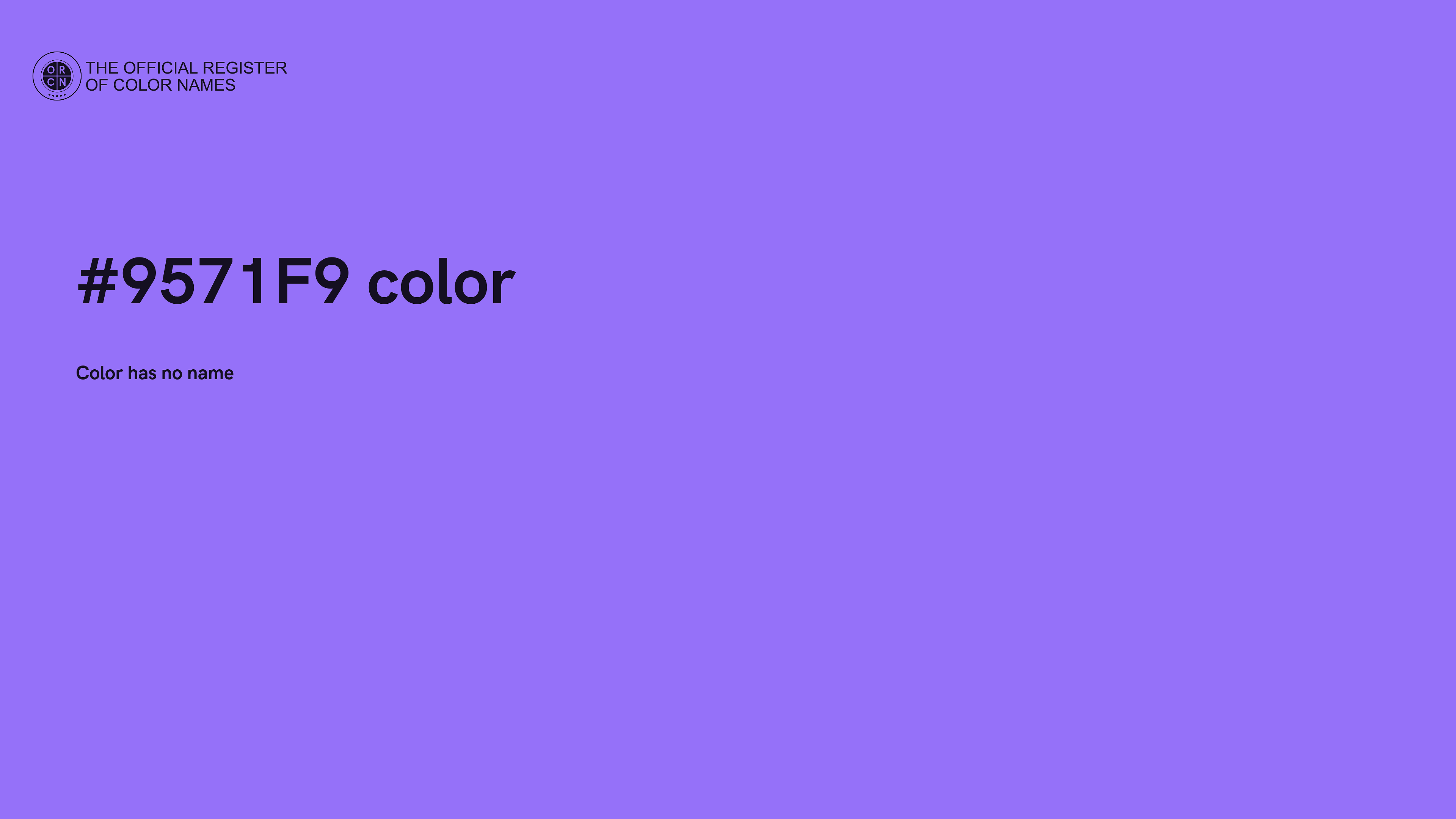 For printing in non digital world, #9571F9 is represented in CMYK as 39 Cyan, 53 Magenta, 0 Yellow, and 2 Black (Key) (C:39 M:53 Y:0 K:2).