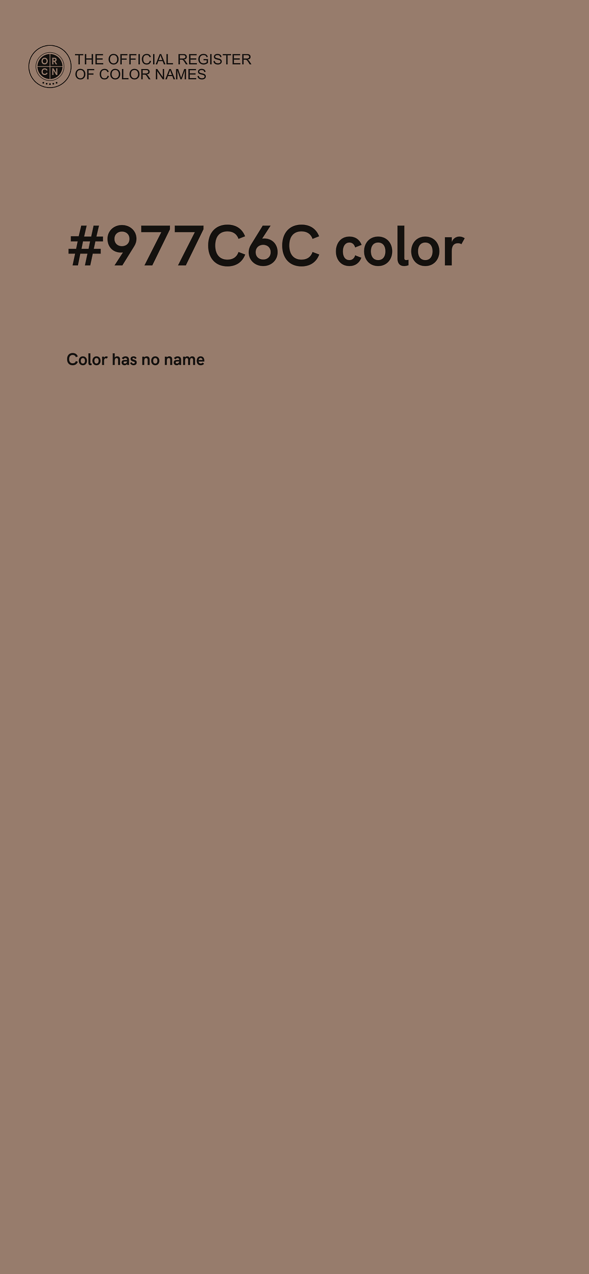 The digital color HEX #977C6C belongs to the Orange Color Family featuring Low Saturation (Saturation Family) and Light (Brightness Family).