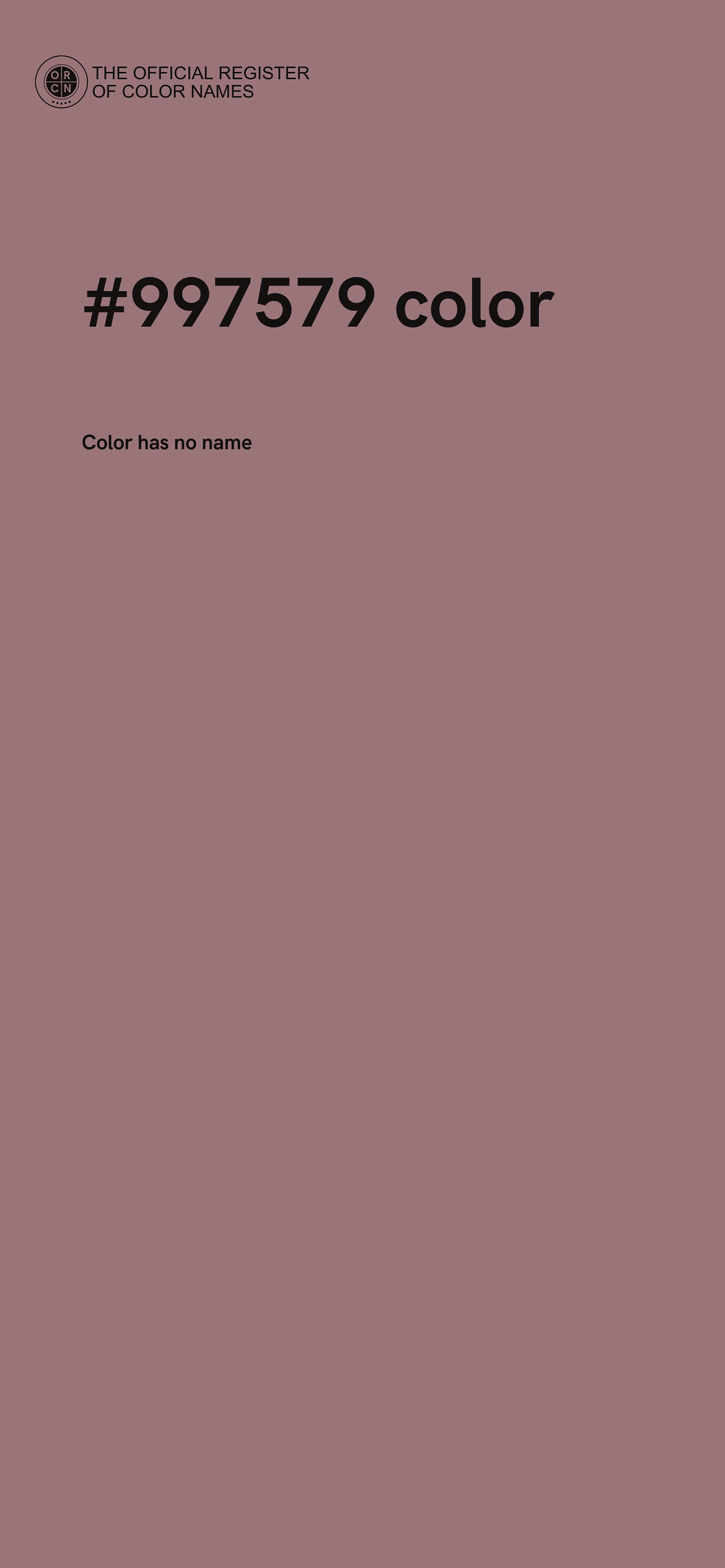The digital color HEX #997579 belongs to the Red Color Family featuring Low Saturation (Saturation Family) and Light (Brightness Family).