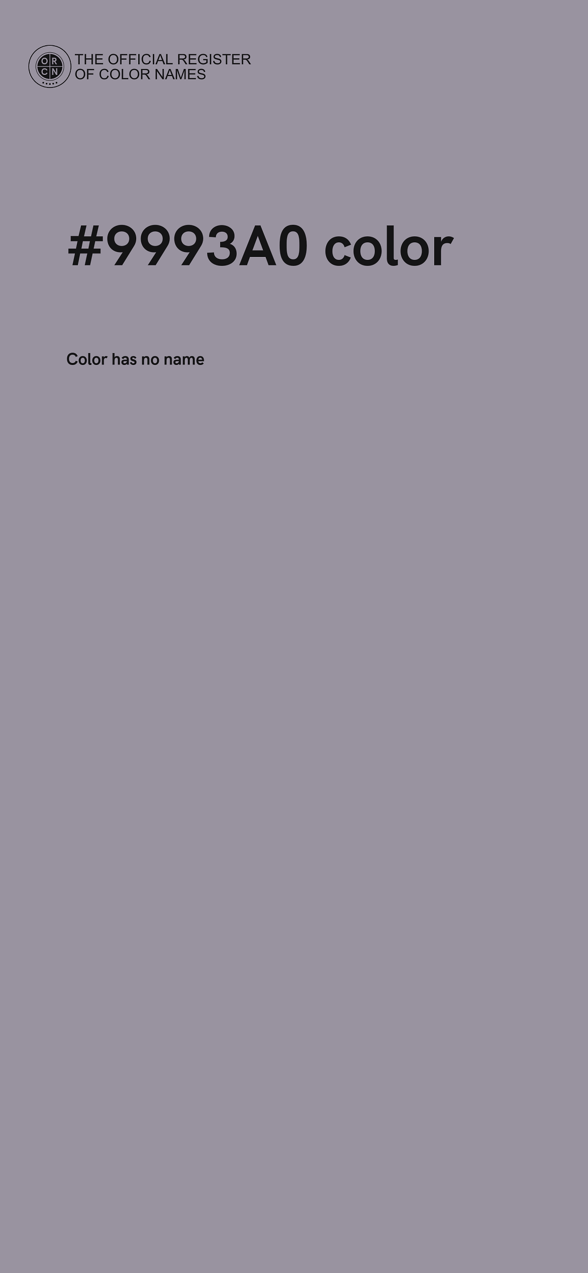 The digital color HEX #9993A0 belongs to the Violet Color Family featuring Desaturated (Saturation Family) and Very Light (Brightness Family).