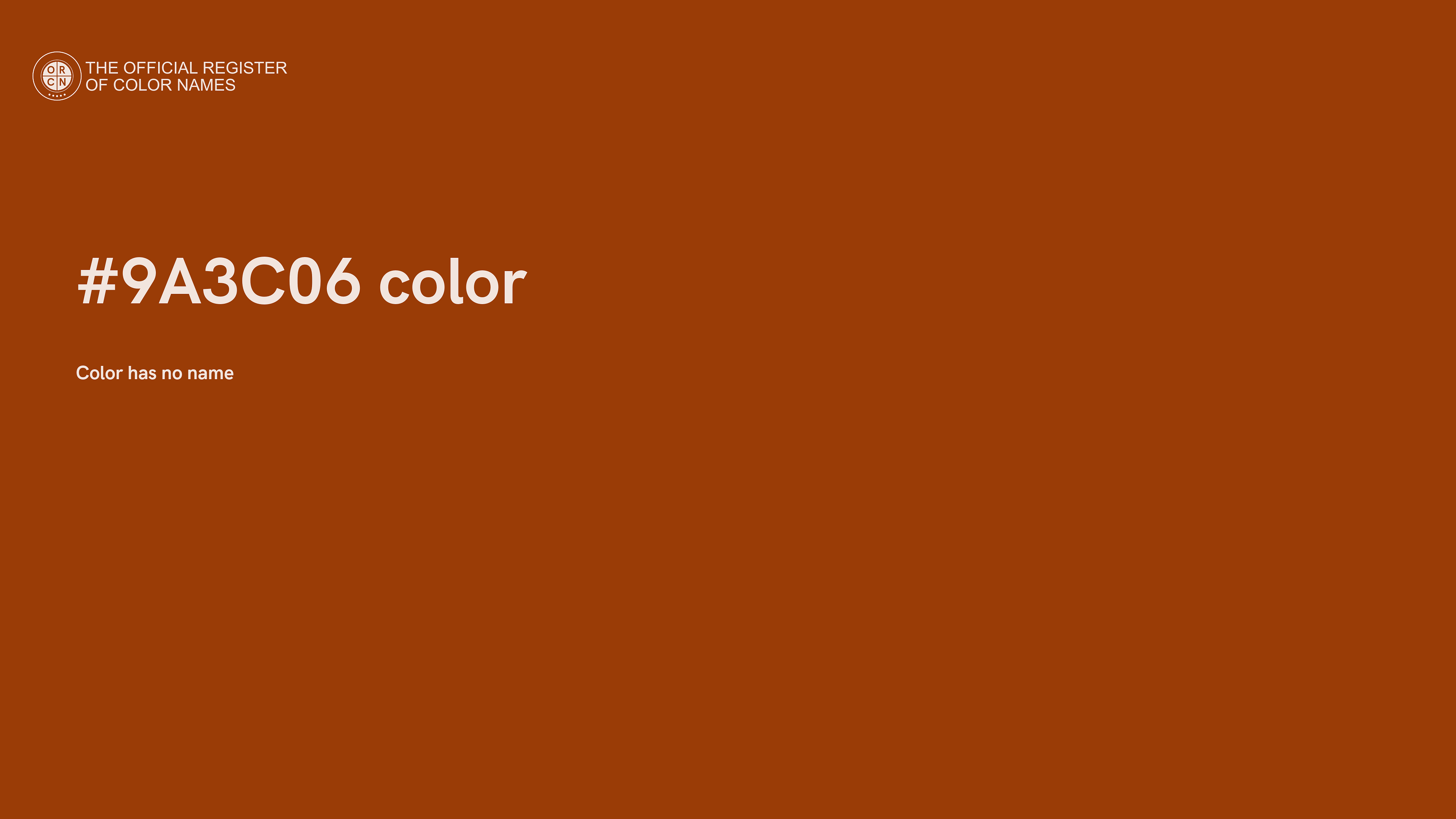 The digital color HEX #9A3C06 belongs to the Orange Color Family featuring Full Saturation (Saturation Family) and Neutral (Brightness Family).