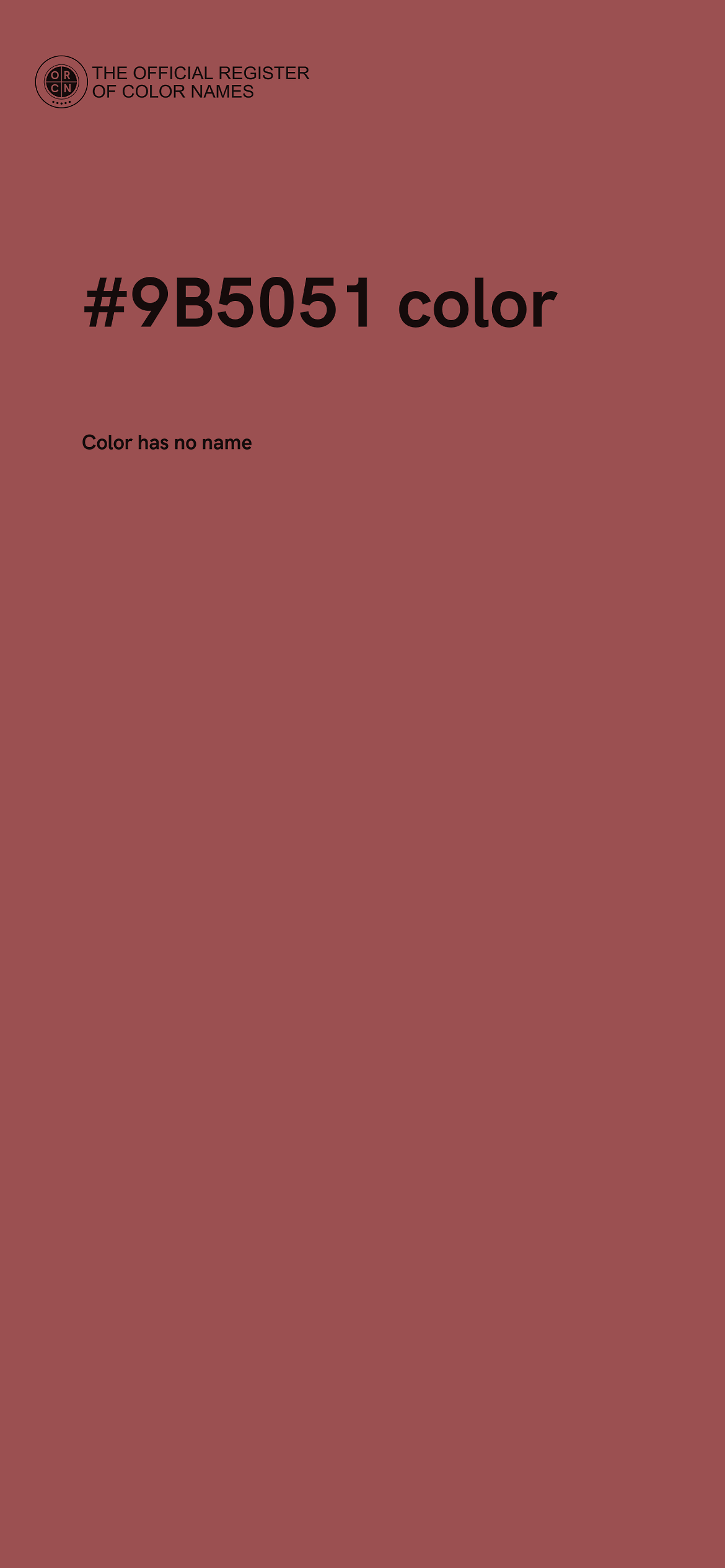 The digital color HEX #9B5051 belongs to the Red Color Family featuring Mild Saturation (Saturation Family) and Light (Brightness Family).