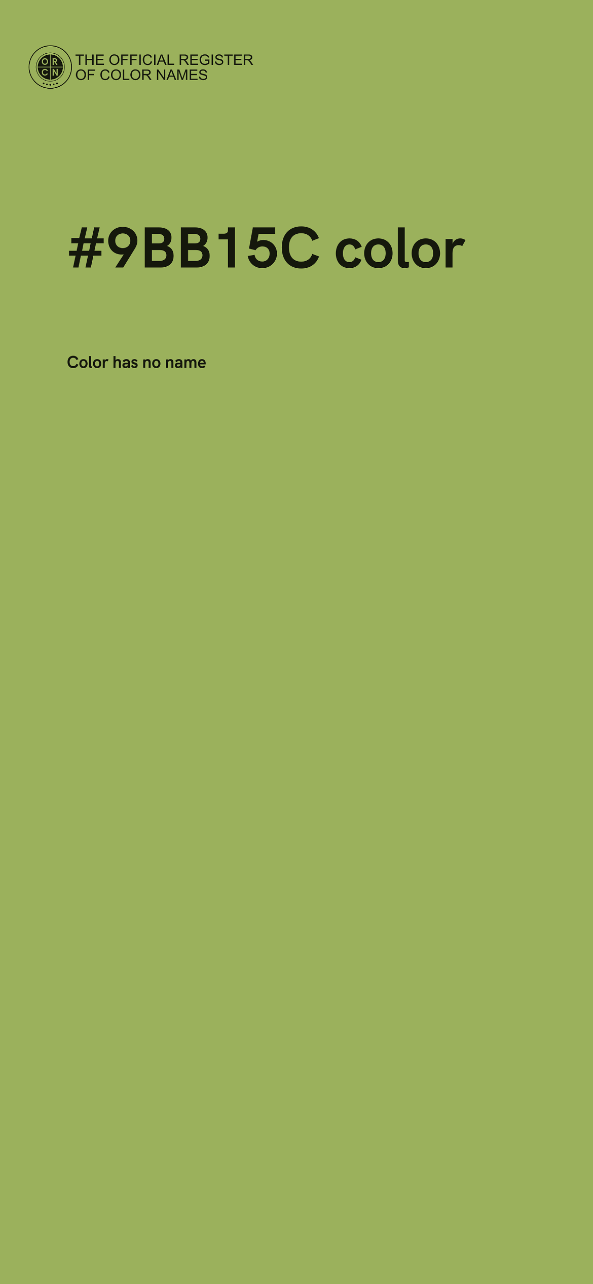 The digital color HEX #9BB15C belongs to the Chartreuse Color Family featuring Mild Saturation (Saturation Family) and Light (Brightness Family).