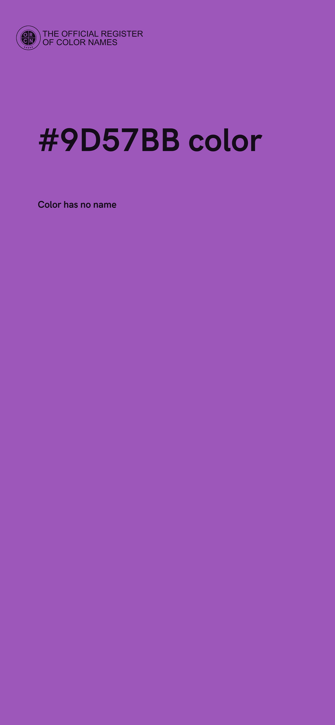 The digital color HEX #9D57BB belongs to the Violet Color Family featuring Moderate Saturation (Saturation Family) and Light (Brightness Family).