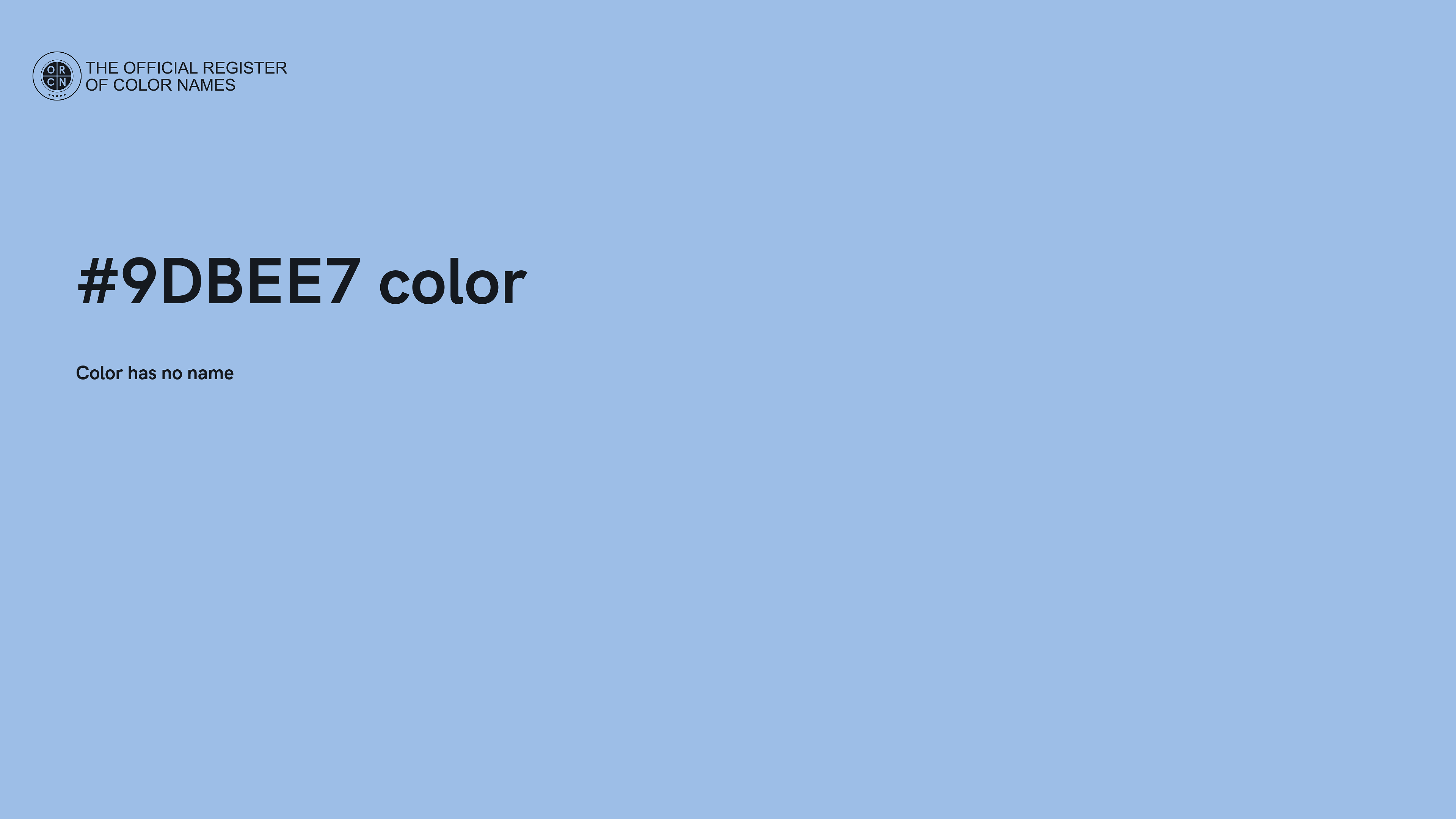 The digital color HEX #9DBEE7 belongs to the Azure Color Family featuring High Saturation (Saturation Family) and Very Light (Brightness Family).
