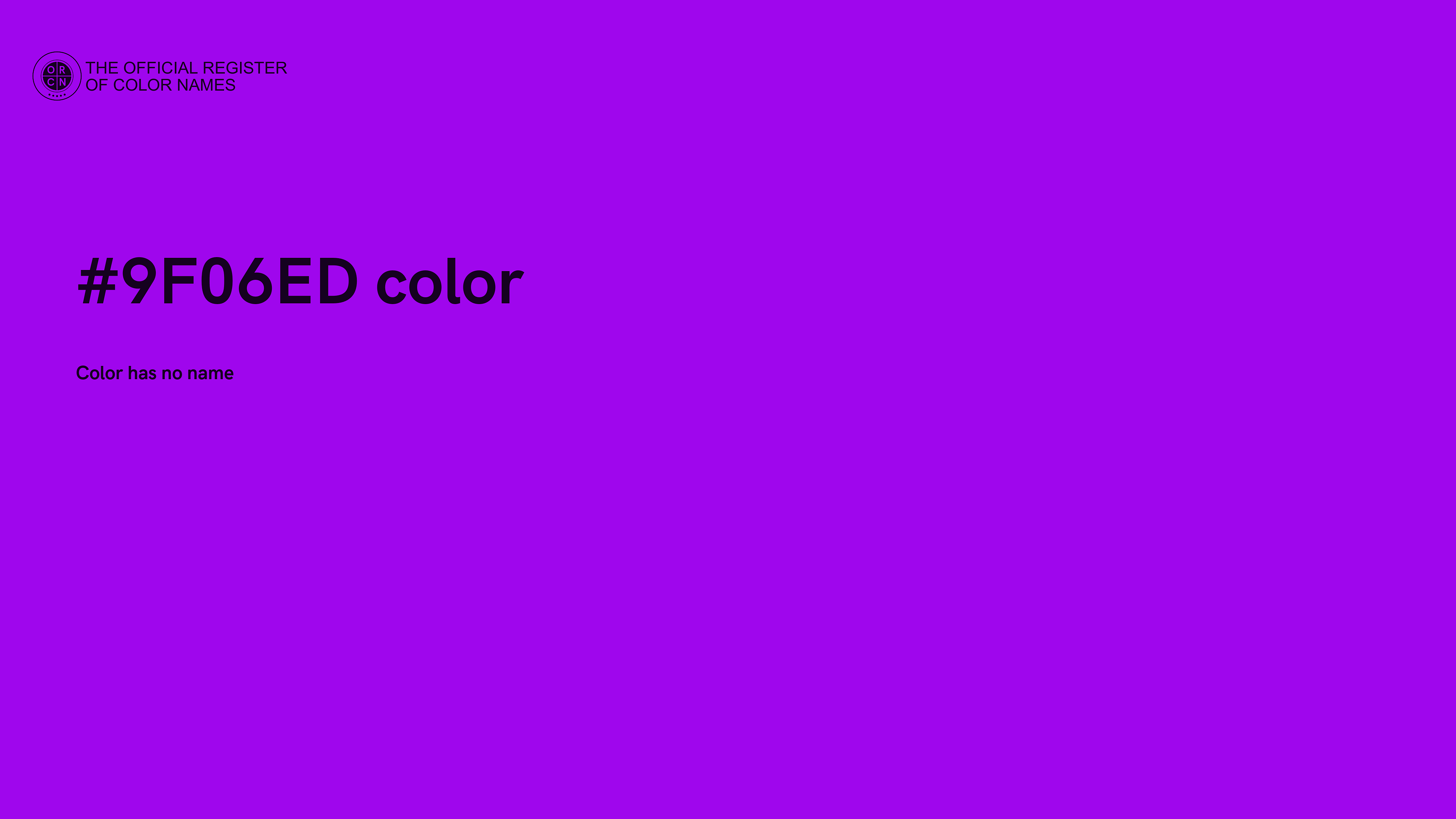 The digital color HEX #9F06ED belongs to the Violet Color Family featuring Full Saturation (Saturation Family) and Light (Brightness Family).