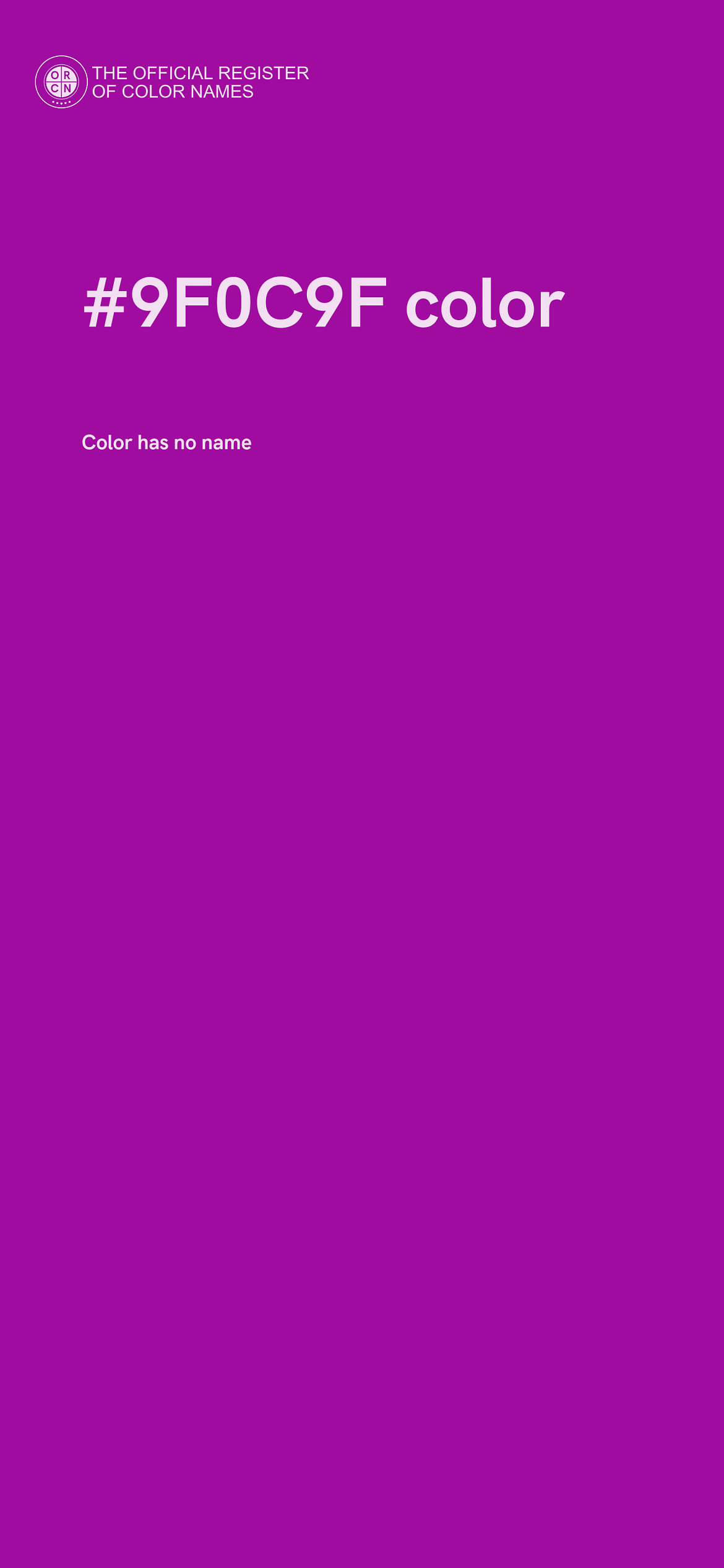 The digital color HEX #9F0C9F belongs to the Magenta Color Family featuring Full Saturation (Saturation Family) and Neutral (Brightness Family).