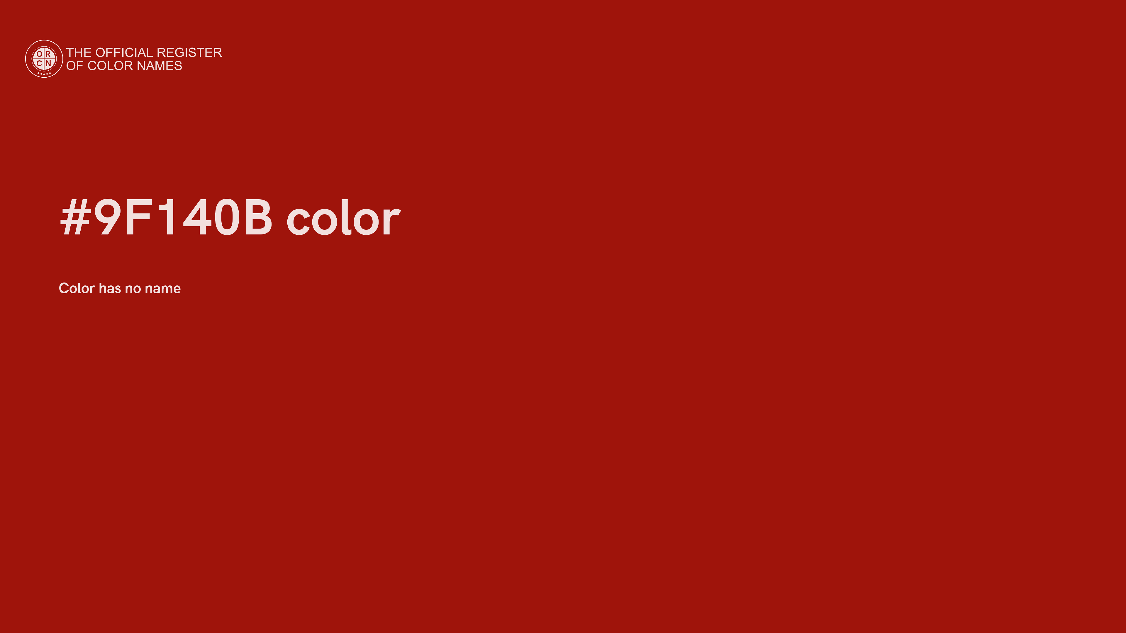 The digital color HEX #9F140B belongs to the Red Color Family featuring Full Saturation (Saturation Family) and Neutral (Brightness Family).