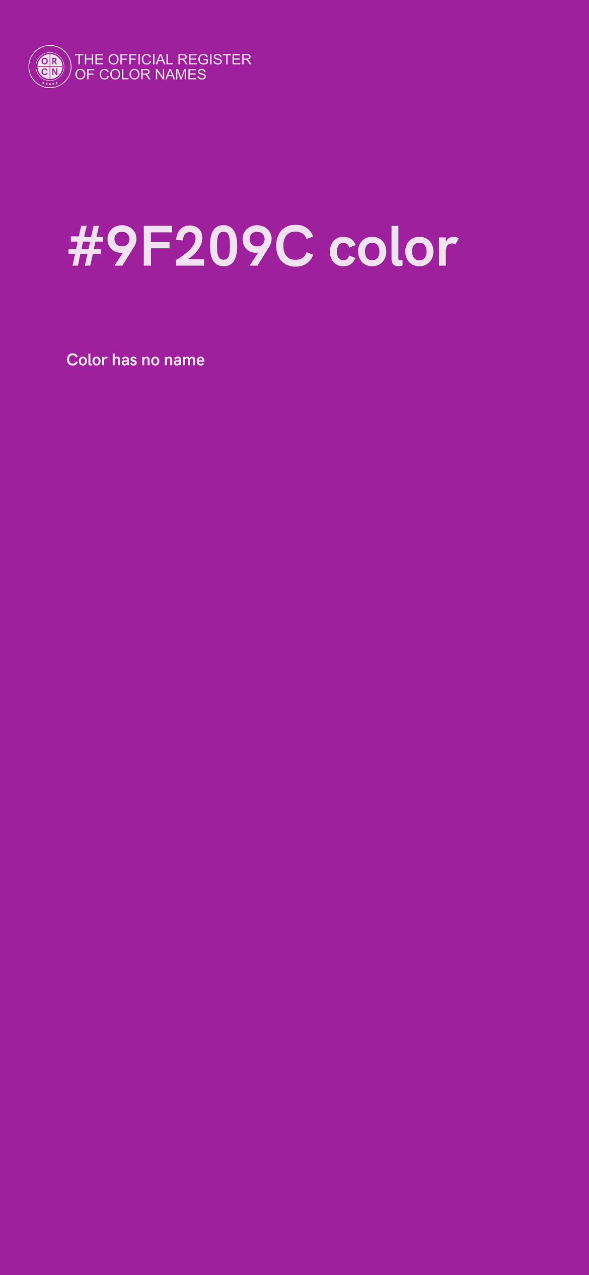 The digital color HEX #9F209C belongs to the Magenta Color Family featuring High Saturation (Saturation Family) and Neutral (Brightness Family).