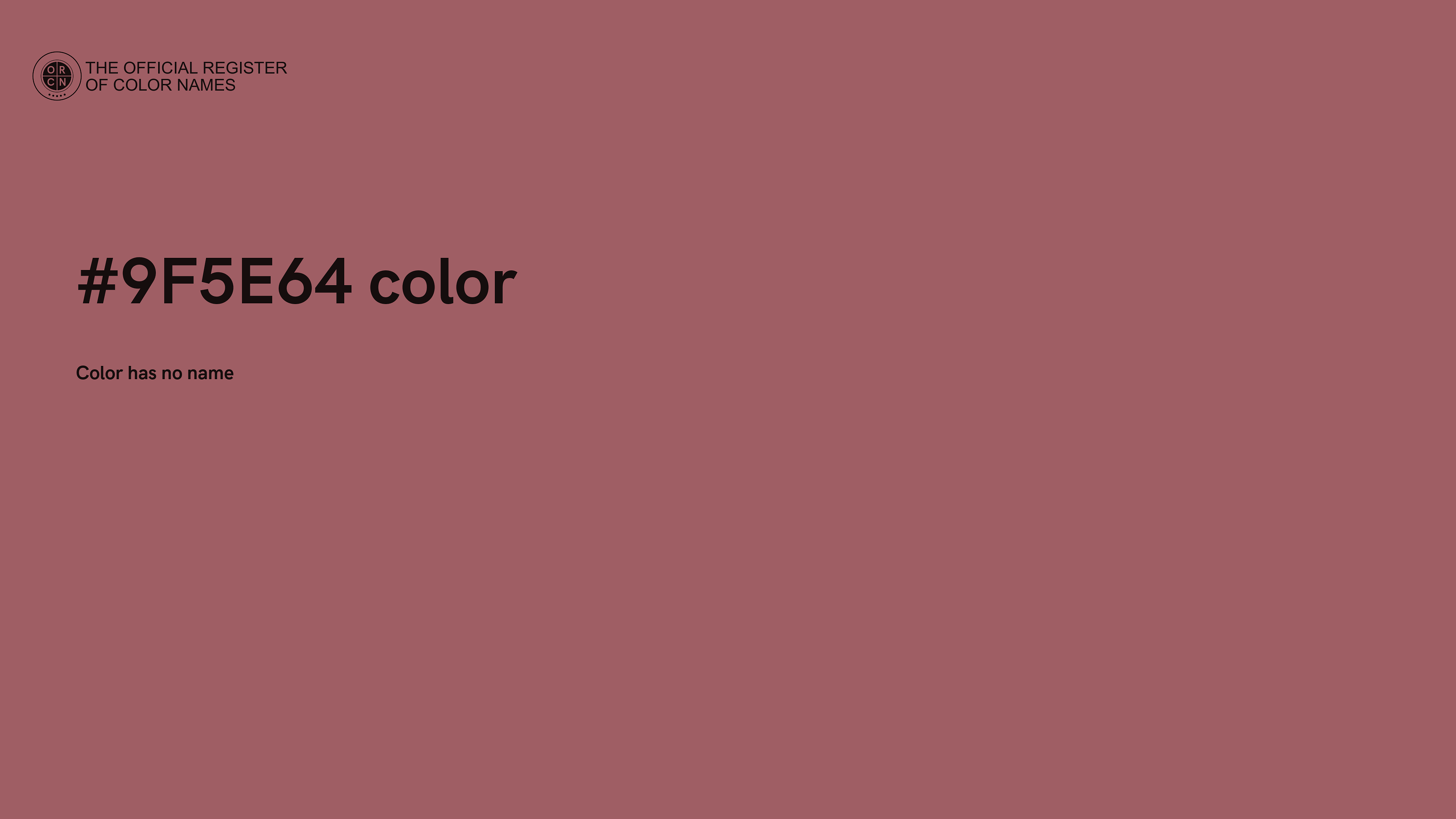 The digital color HEX #9F5E64 belongs to the Red Color Family featuring Mild Saturation (Saturation Family) and Light (Brightness Family).