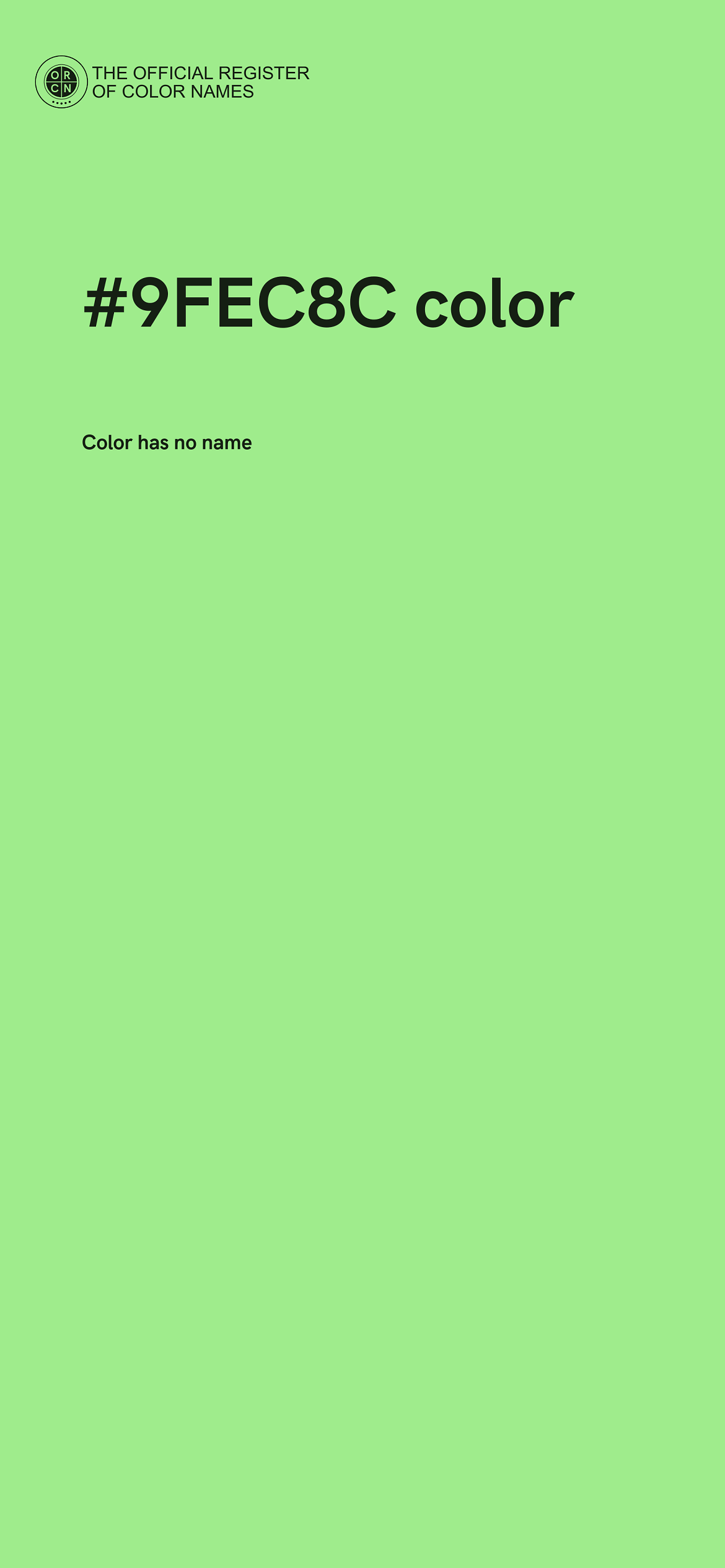 The digital color HEX #9FEC8C belongs to the Green Color Family featuring High Saturation (Saturation Family) and Very Light (Brightness Family).