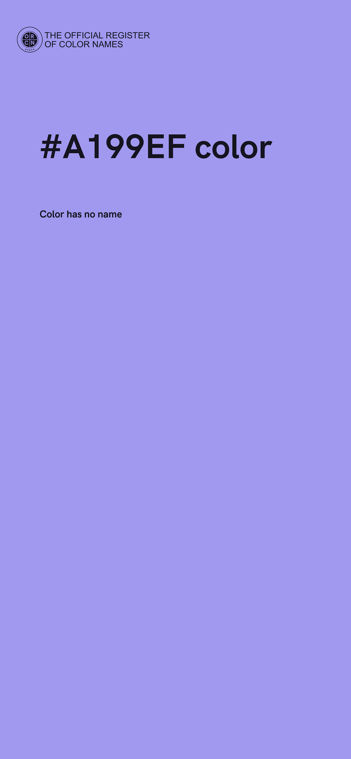 The digital color HEX #A199EF belongs to the Blue Color Family featuring High Saturation (Saturation Family) and Very Light (Brightness Family).