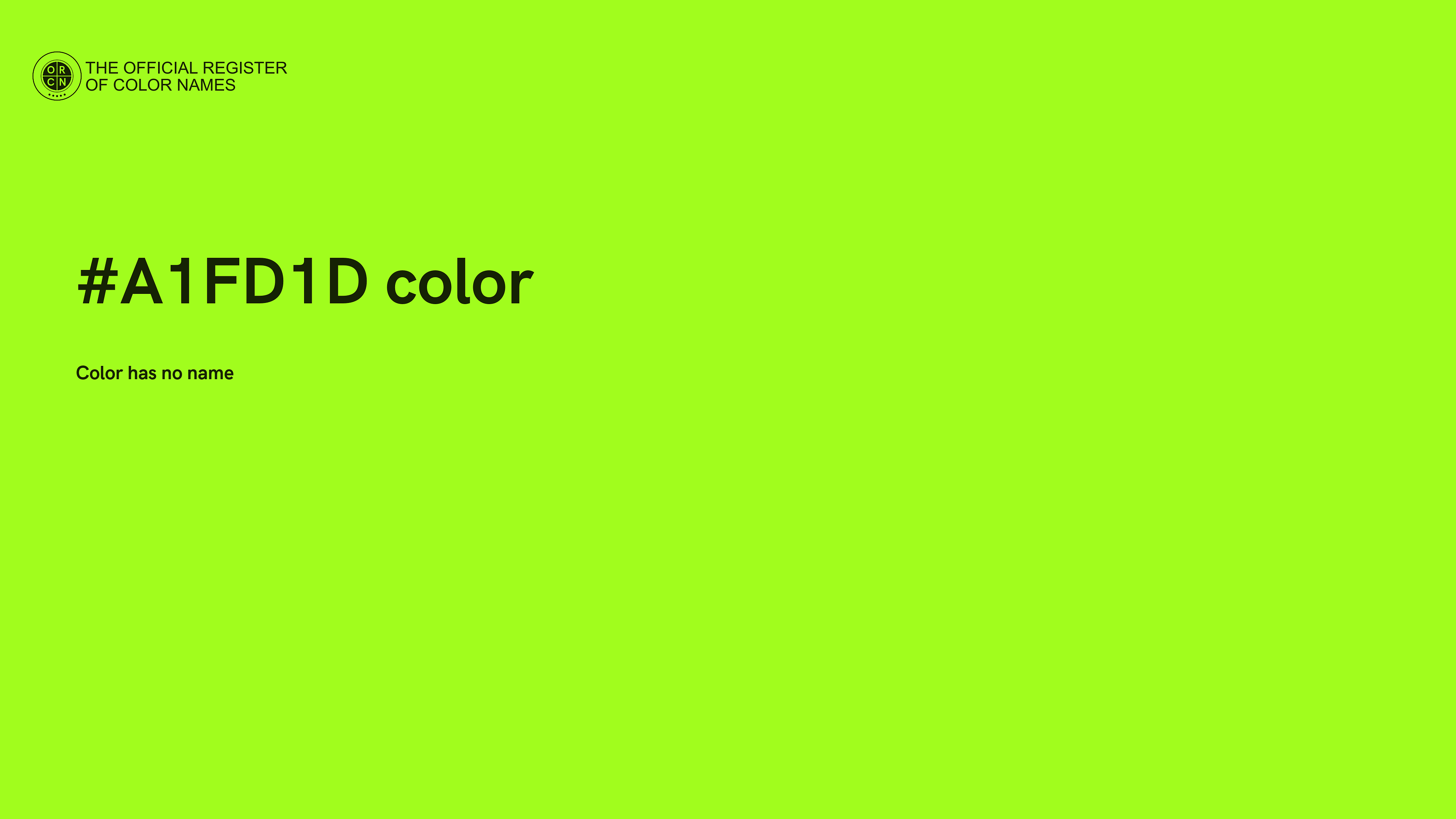 The digital color HEX #A1FD1D belongs to the Chartreuse Color Family featuring Full Saturation (Saturation Family) and Light (Brightness Family).
