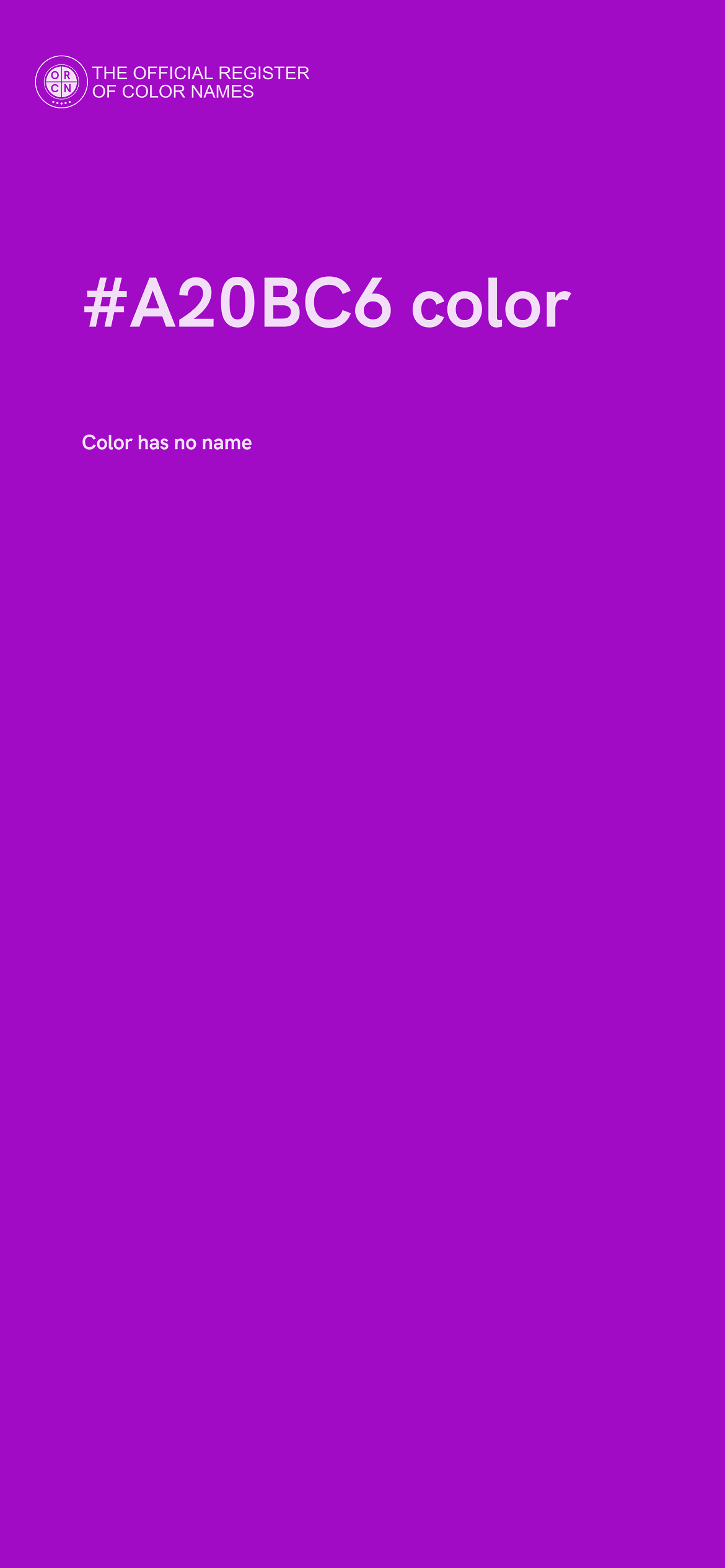 For printing in non digital world, #A20BC6 is represented in CMYK as 14 Cyan, 73 Magenta, 0 Yellow, and 22 Black (Key) (C:14 M:73 Y:0 K:22).