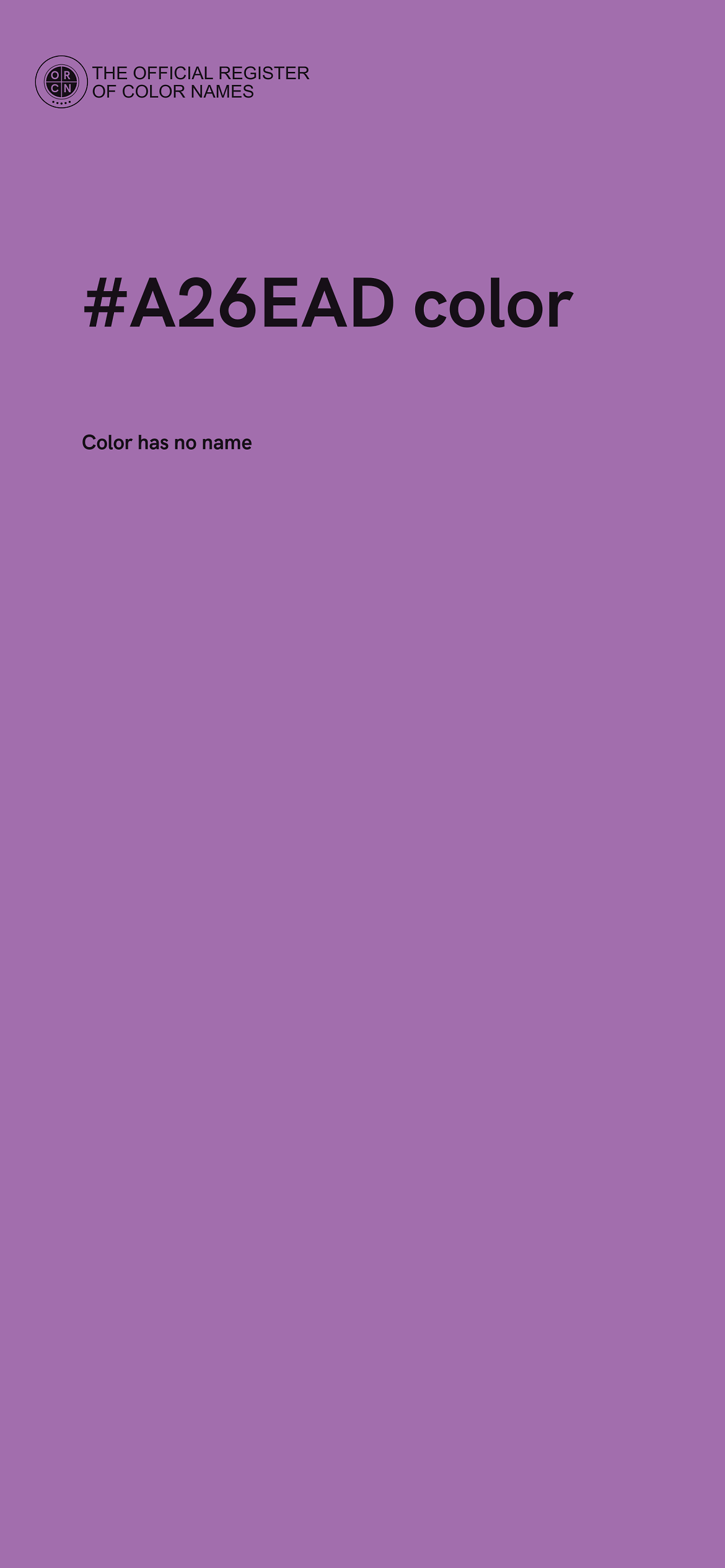 The digital color HEX #A26EAD belongs to the Magenta Color Family featuring Mild Saturation (Saturation Family) and Light (Brightness Family).