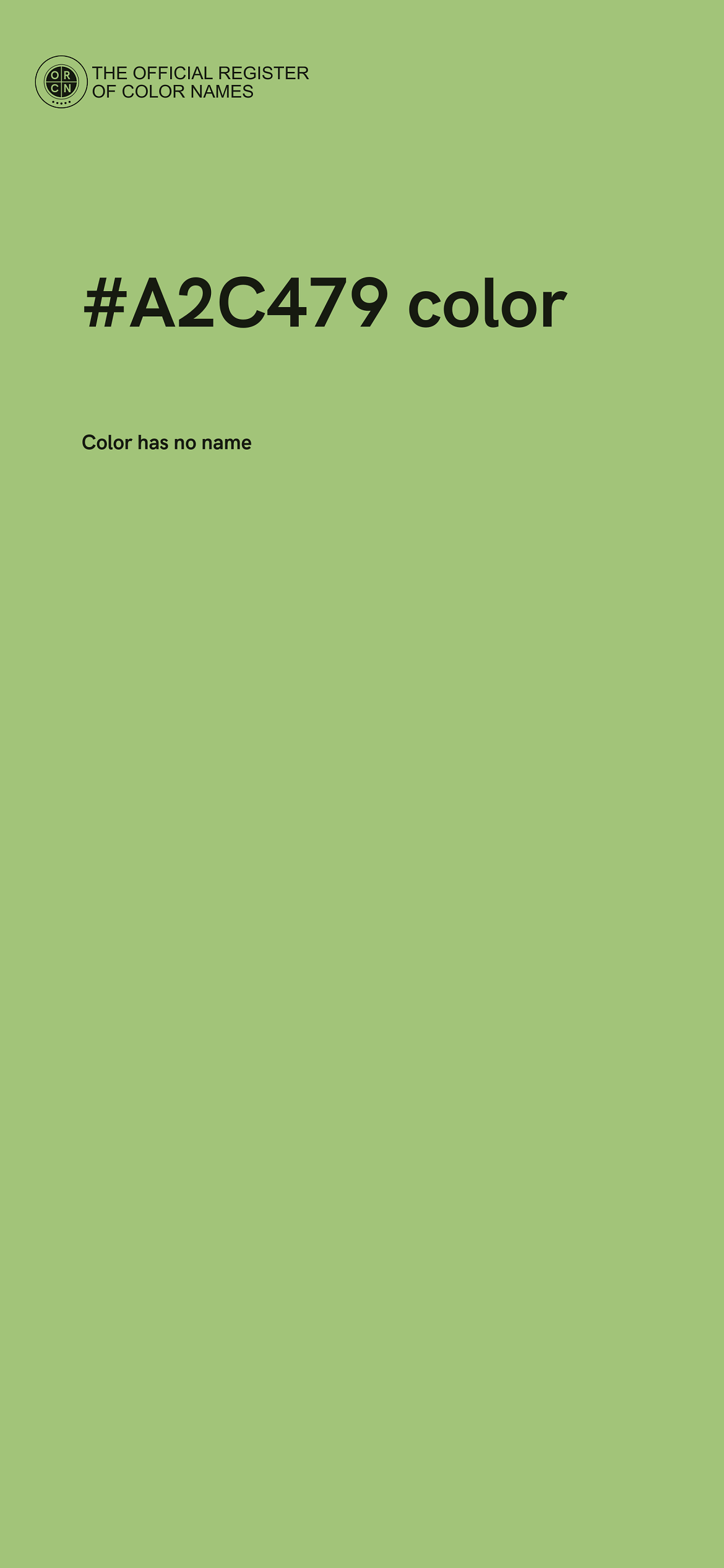 For printing in non digital world, #A2C479 is represented in CMYK as 13 Cyan, 0 Magenta, 29 Yellow, and 23 Black (Key) (C:13 M:0 Y:29 K:23).