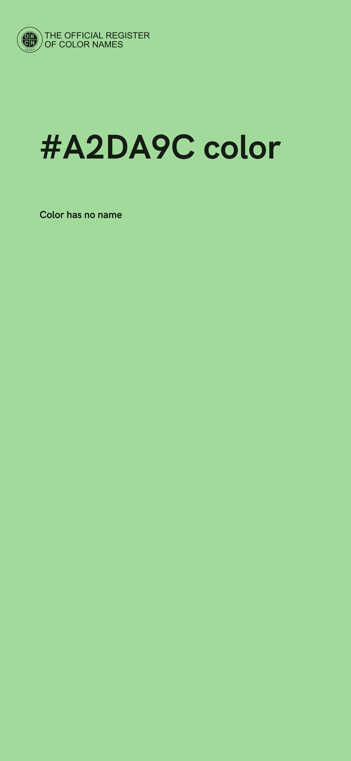 For printing in non digital world, #A2DA9C is represented in CMYK as 22 Cyan, 0 Magenta, 24 Yellow, and 15 Black (Key) (C:22 M:0 Y:24 K:15).