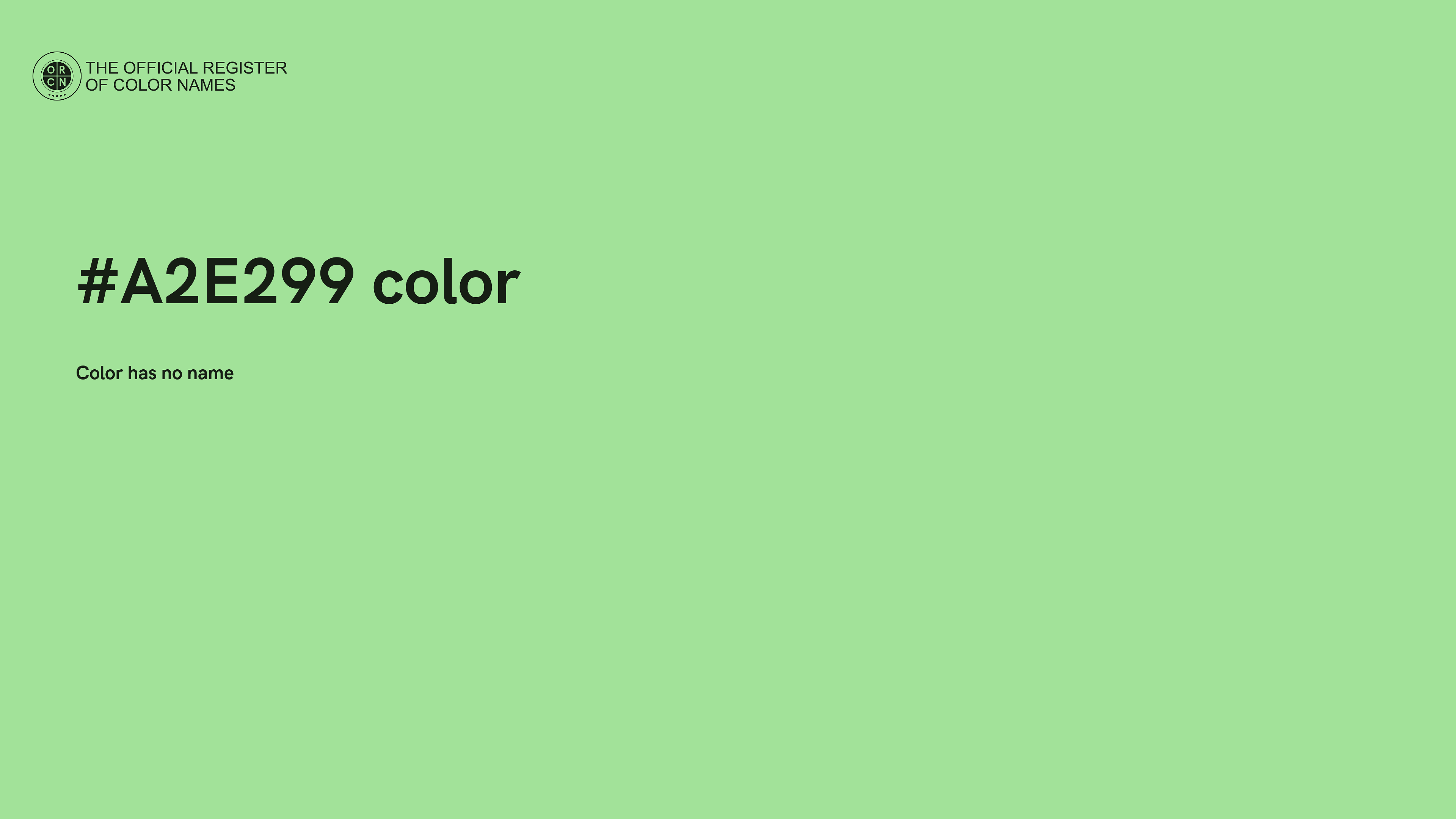The digital color HEX #A2E299 belongs to the Green Color Family featuring Moderate Saturation (Saturation Family) and Very Light (Brightness Family).