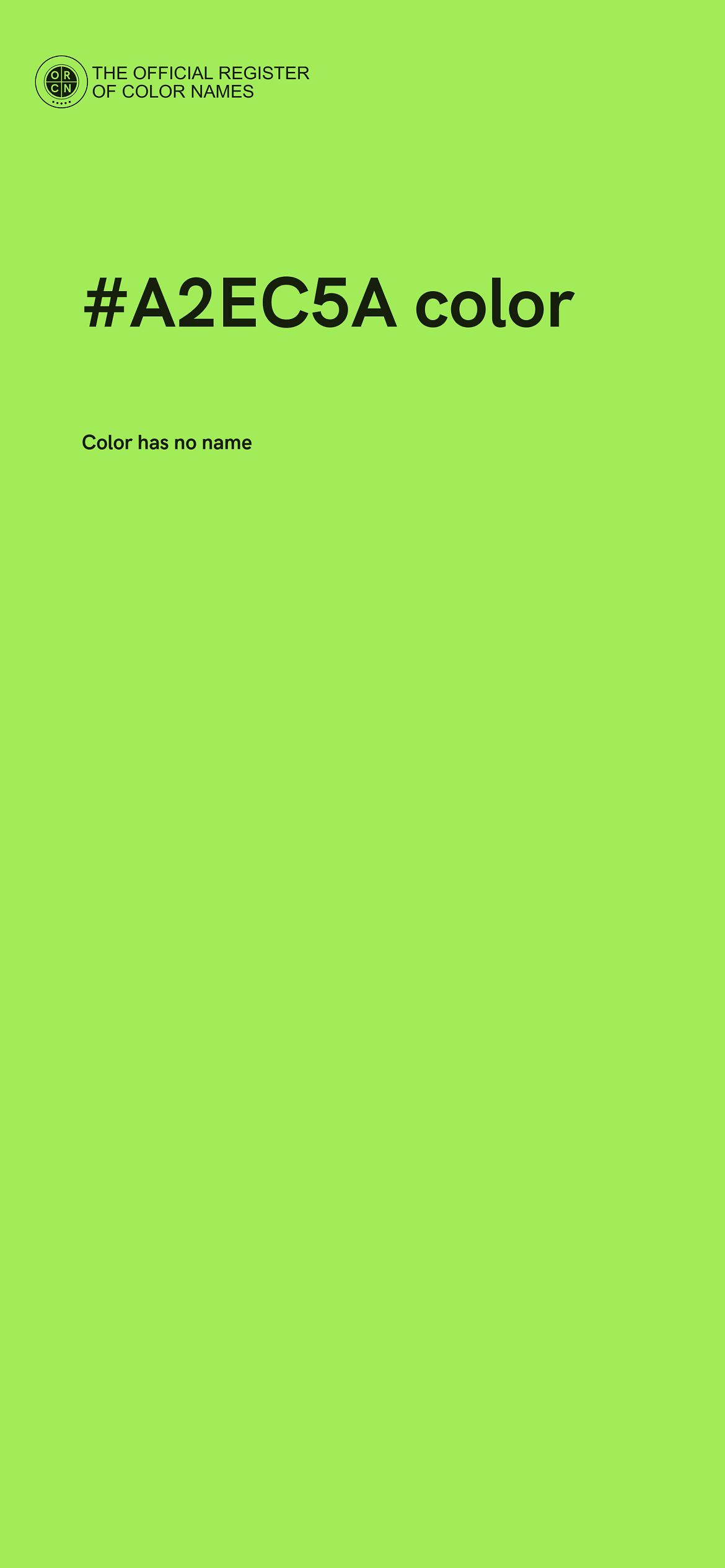 The digital color HEX #A2EC5A belongs to the Chartreuse Color Family featuring High Saturation (Saturation Family) and Very Light (Brightness Family).