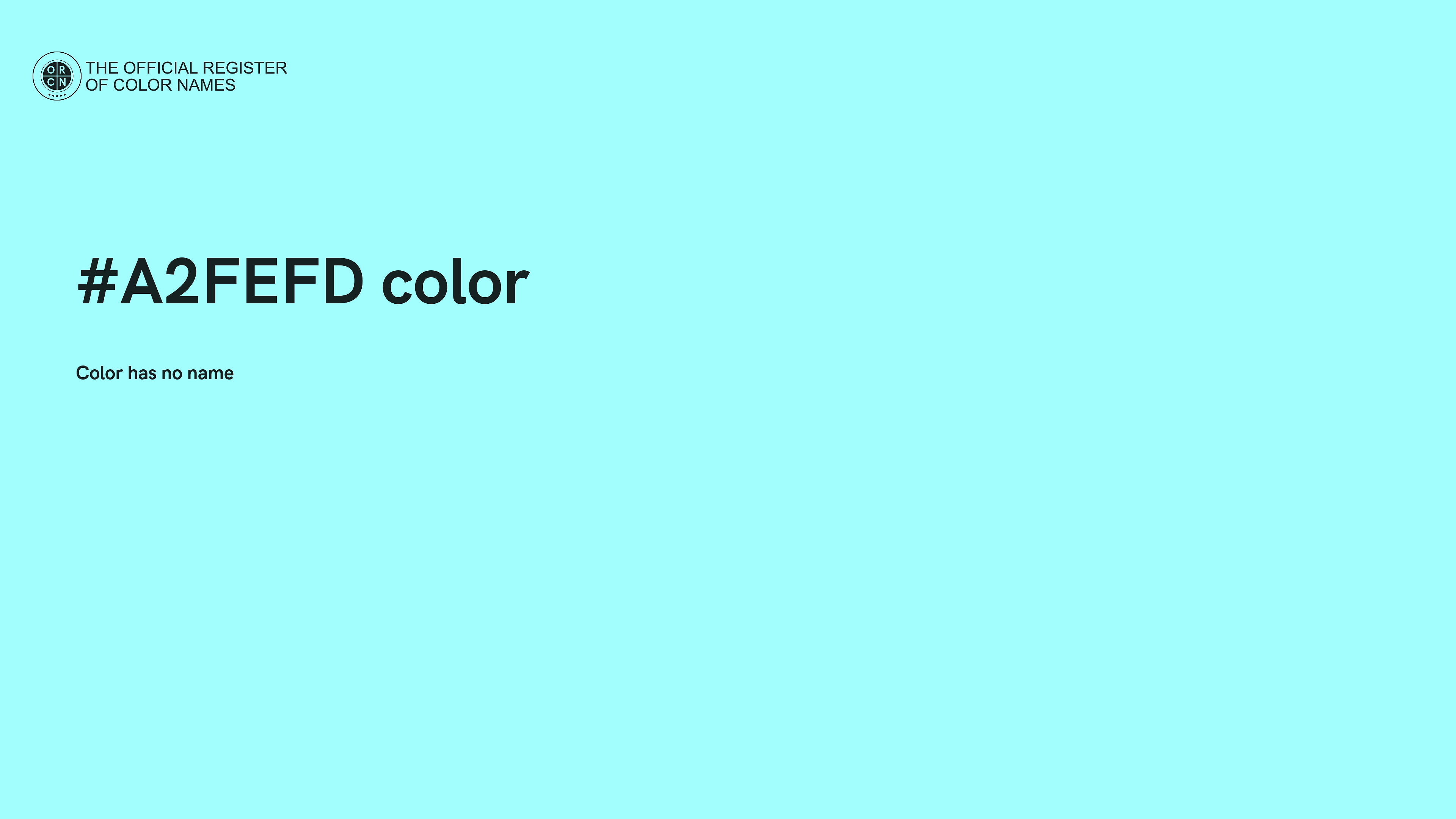 The digital color HEX #A2FEFD belongs to the Cyan Color Family featuring Full Saturation (Saturation Family) and Very Light (Brightness Family).