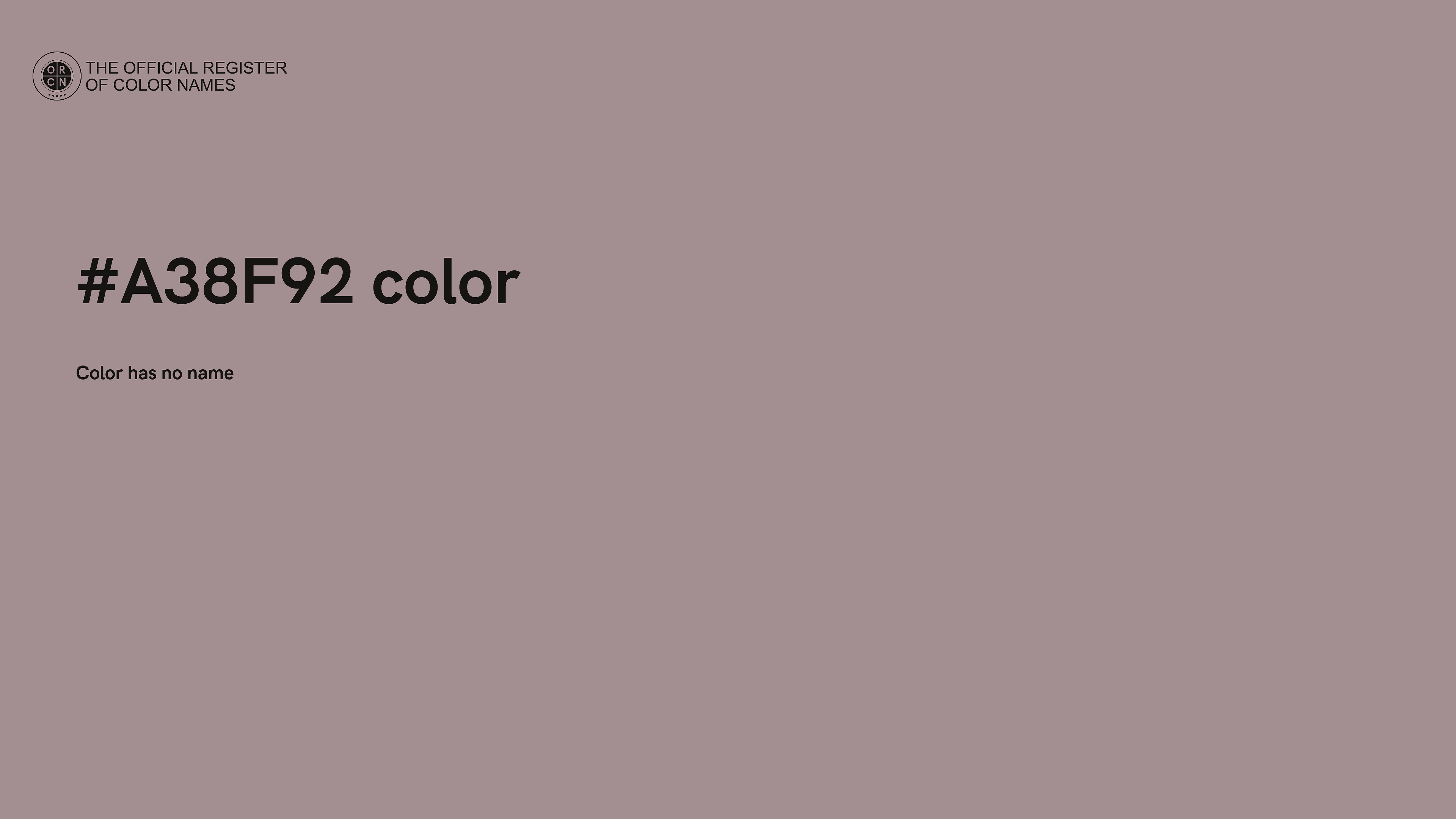 The digital color HEX #A38F92 belongs to the Red Color Family featuring Low Saturation (Saturation Family) and Very Light (Brightness Family).