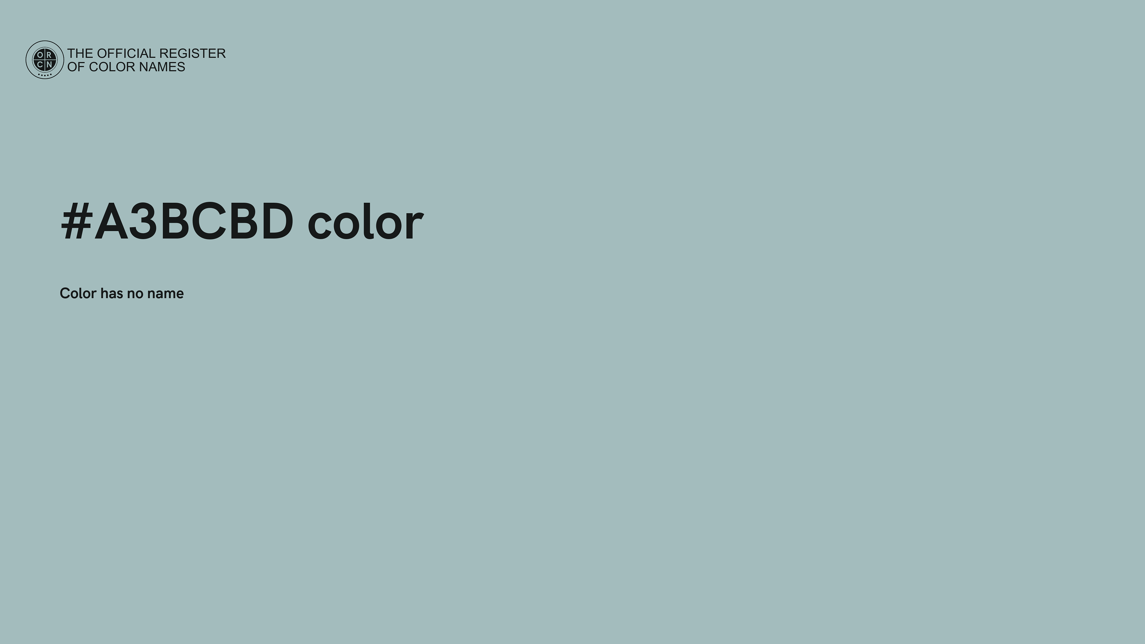 The digital color HEX #A3BCBD belongs to the Cyan Color Family featuring Low Saturation (Saturation Family) and Very Light (Brightness Family).