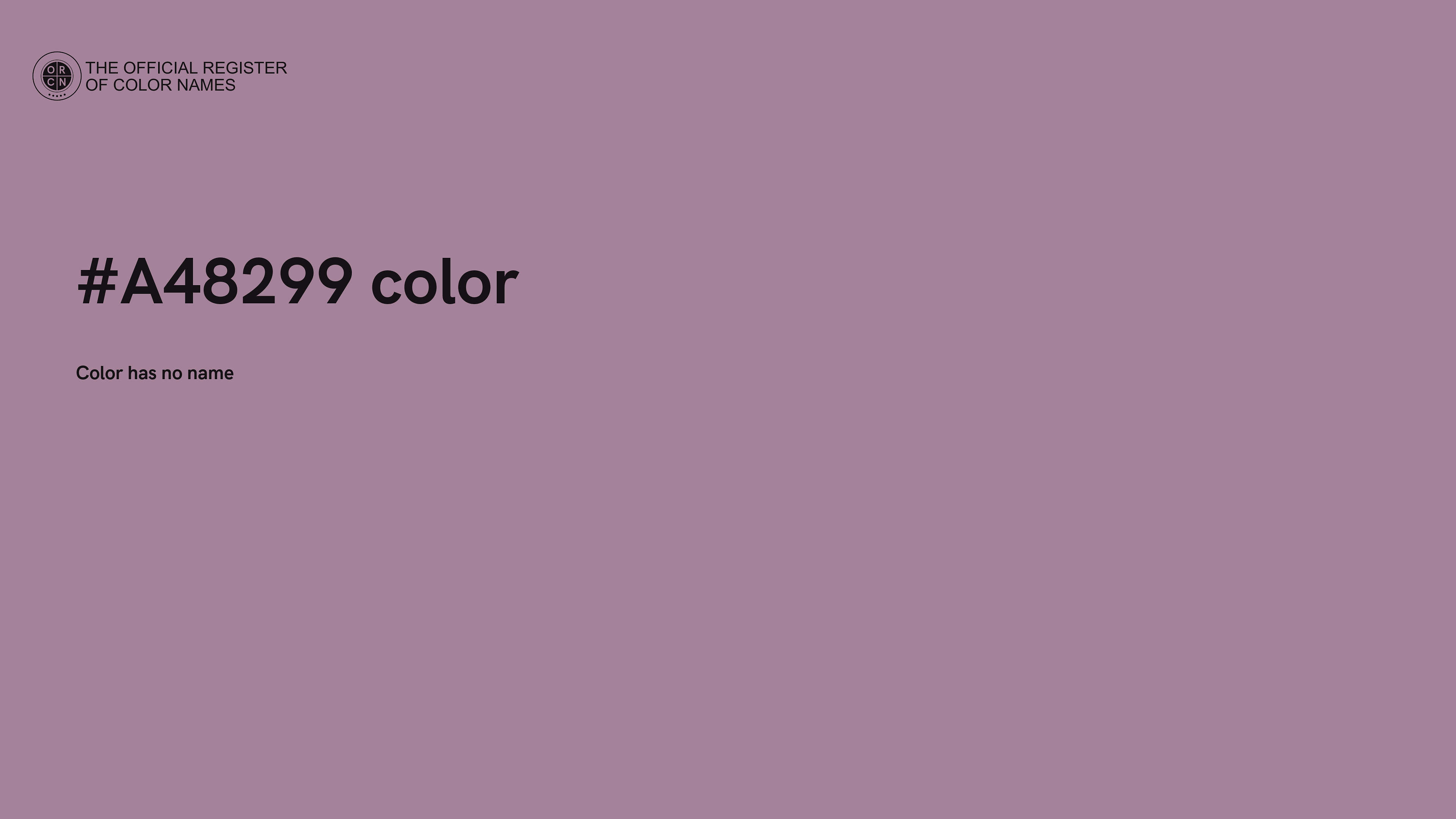 The digital color HEX #A48299 belongs to the Rose Color Family featuring Low Saturation (Saturation Family) and Light (Brightness Family).