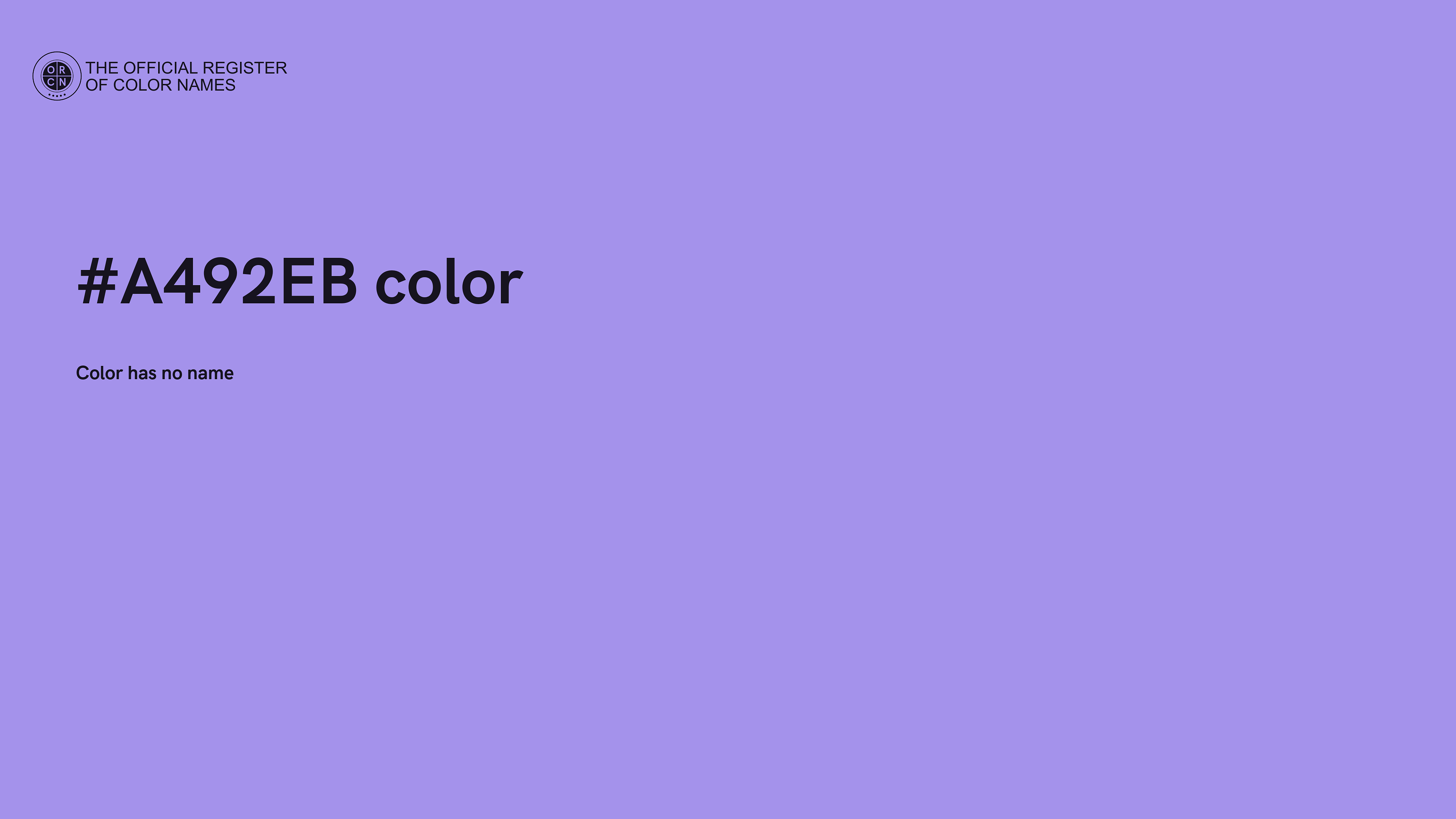 The digital color HEX #A492EB belongs to the Blue Color Family featuring High Saturation (Saturation Family) and Very Light (Brightness Family).