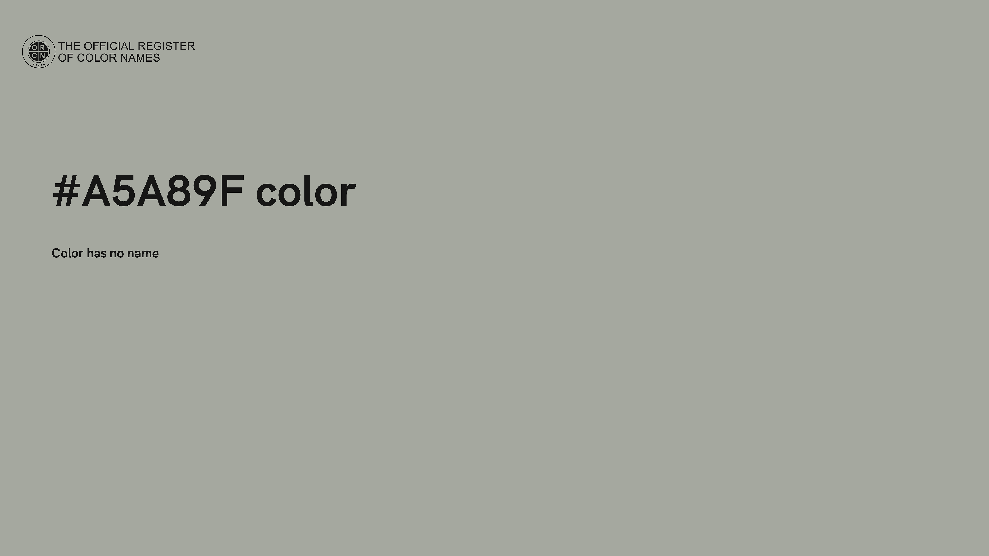 The digital color HEX #A5A89F belongs to the Chartreuse Color Family featuring Desaturated (Saturation Family) and Very Light (Brightness Family).