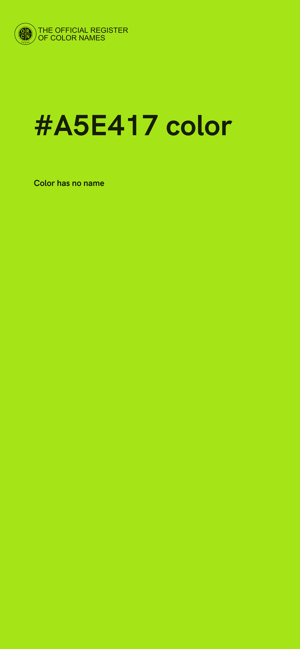 The digital color HEX #A5E417 belongs to the Chartreuse Color Family featuring High Saturation (Saturation Family) and Light (Brightness Family).